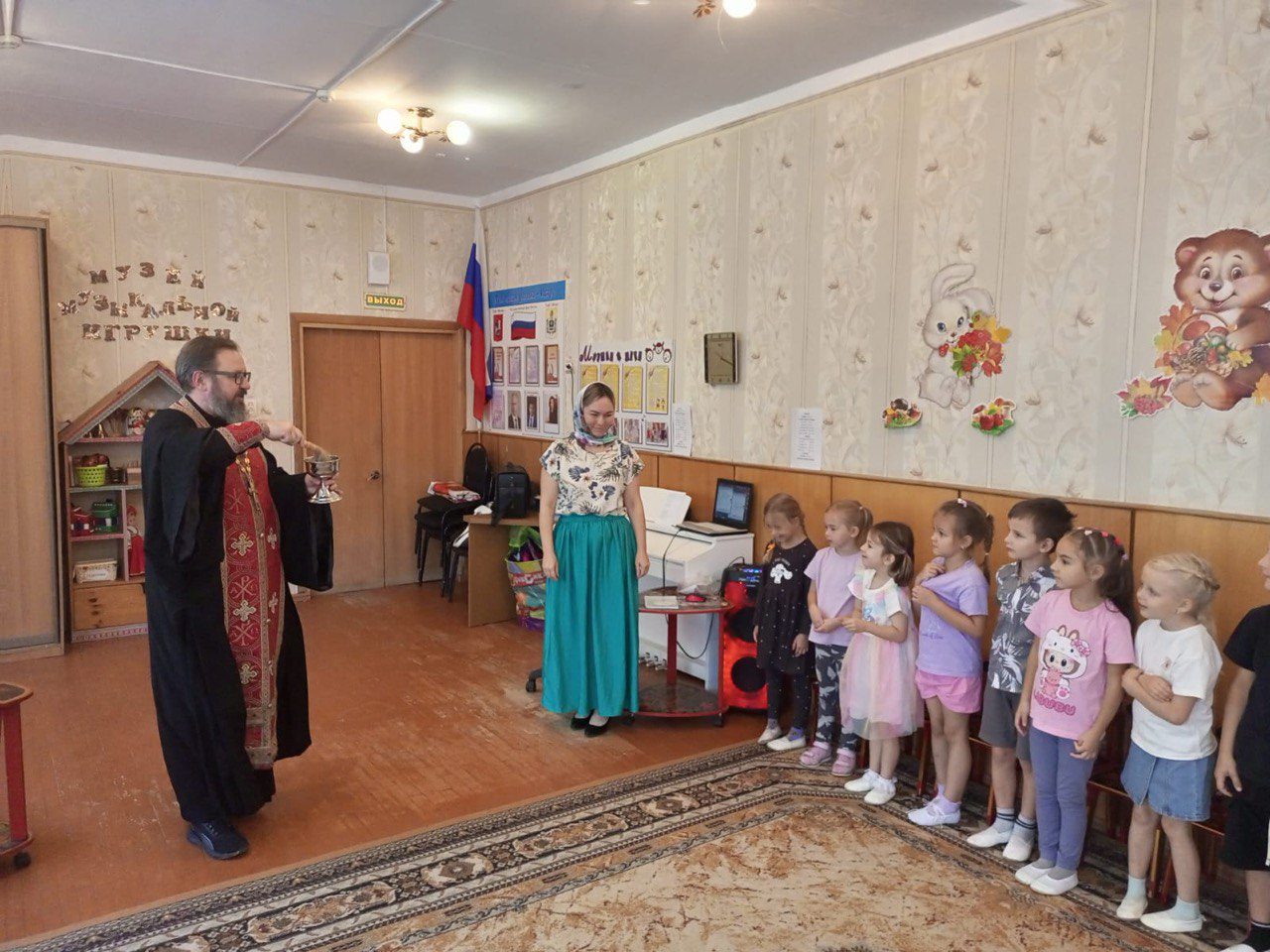 5 сентября настоятель Мироносицкого храма г. Истра священник Павел Малкин, по приглашению администрации и педагогов посетил детский сад №1-52/2. Священнослужитель совершил молебен перед началом нового учебного года и окропил воспитателей и воспитанников святой водой.