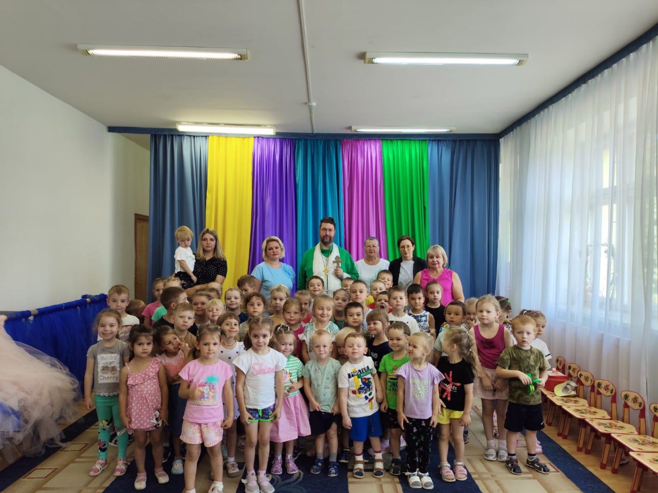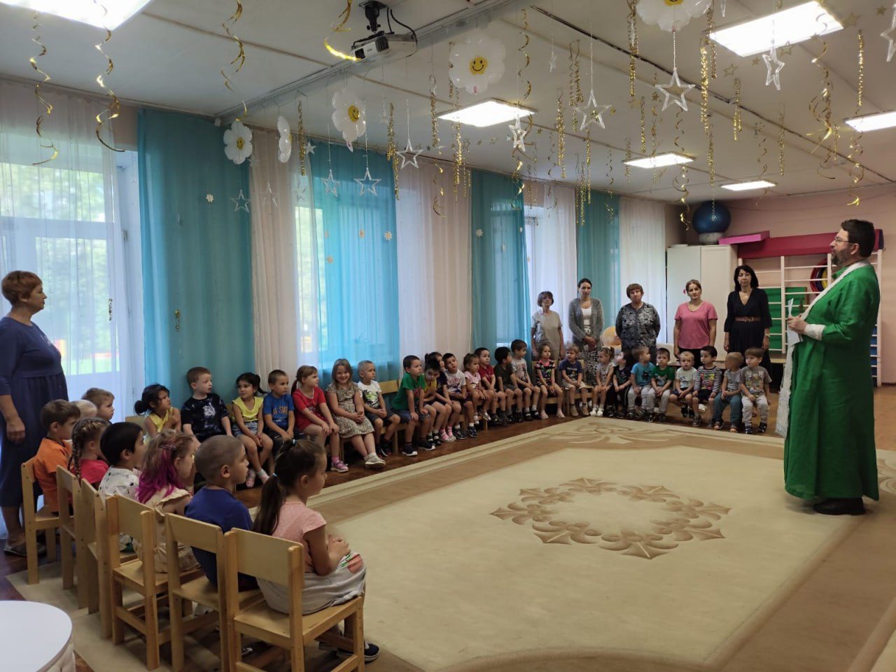 27 августа протоиерей Александр Орлов настоятель Иоанно-Предтеченского храма деревни Садки, по приглашению администрации, посетил детский сад №12 и детский сад № 29 города Дедовск. Священнослужитель совершил молебен и поздравил ребят с началом учебного года. После молебна была проведена беседа с воспитанниками по окончанию которой отец Александр ответил на вопросы.