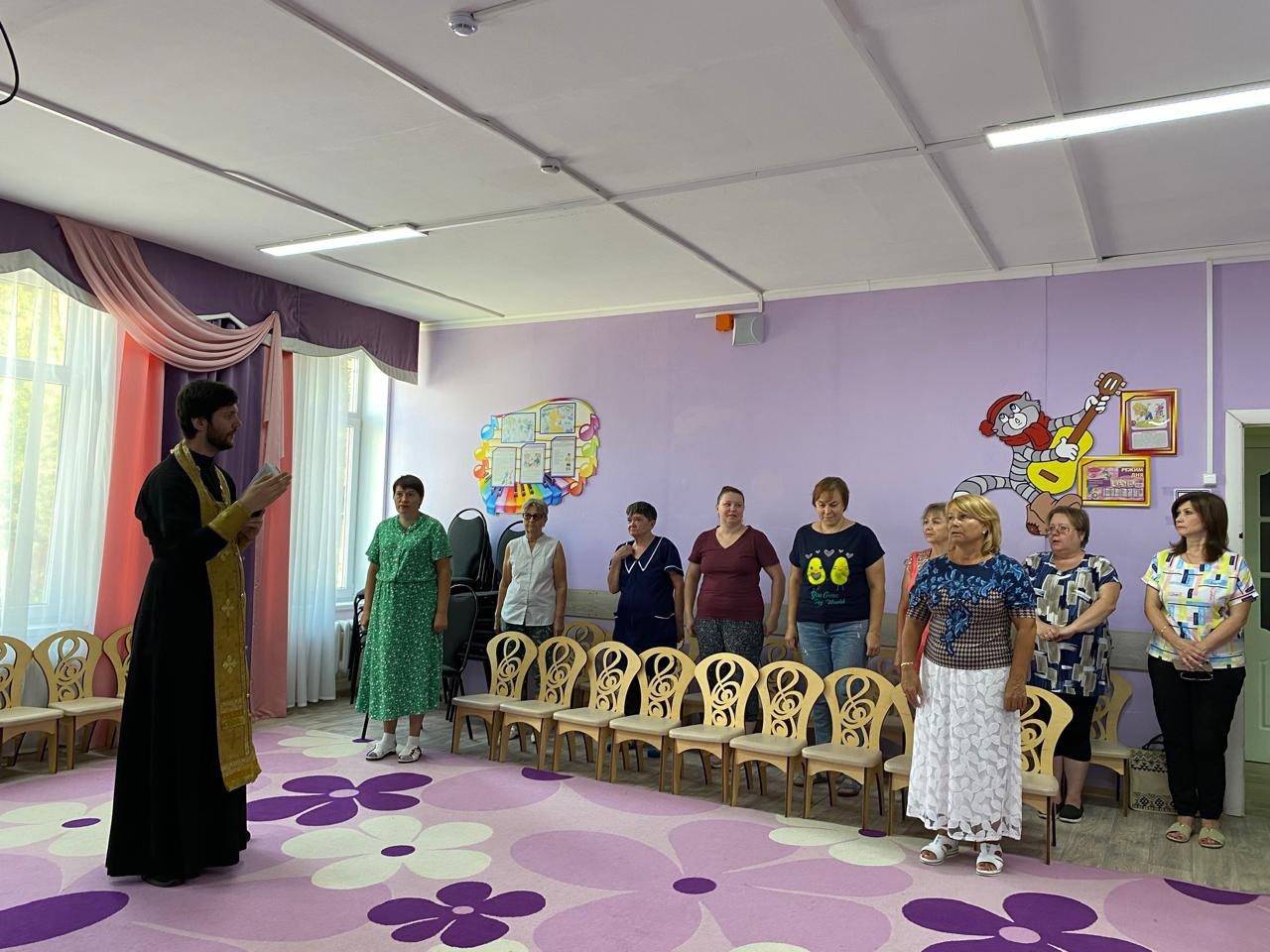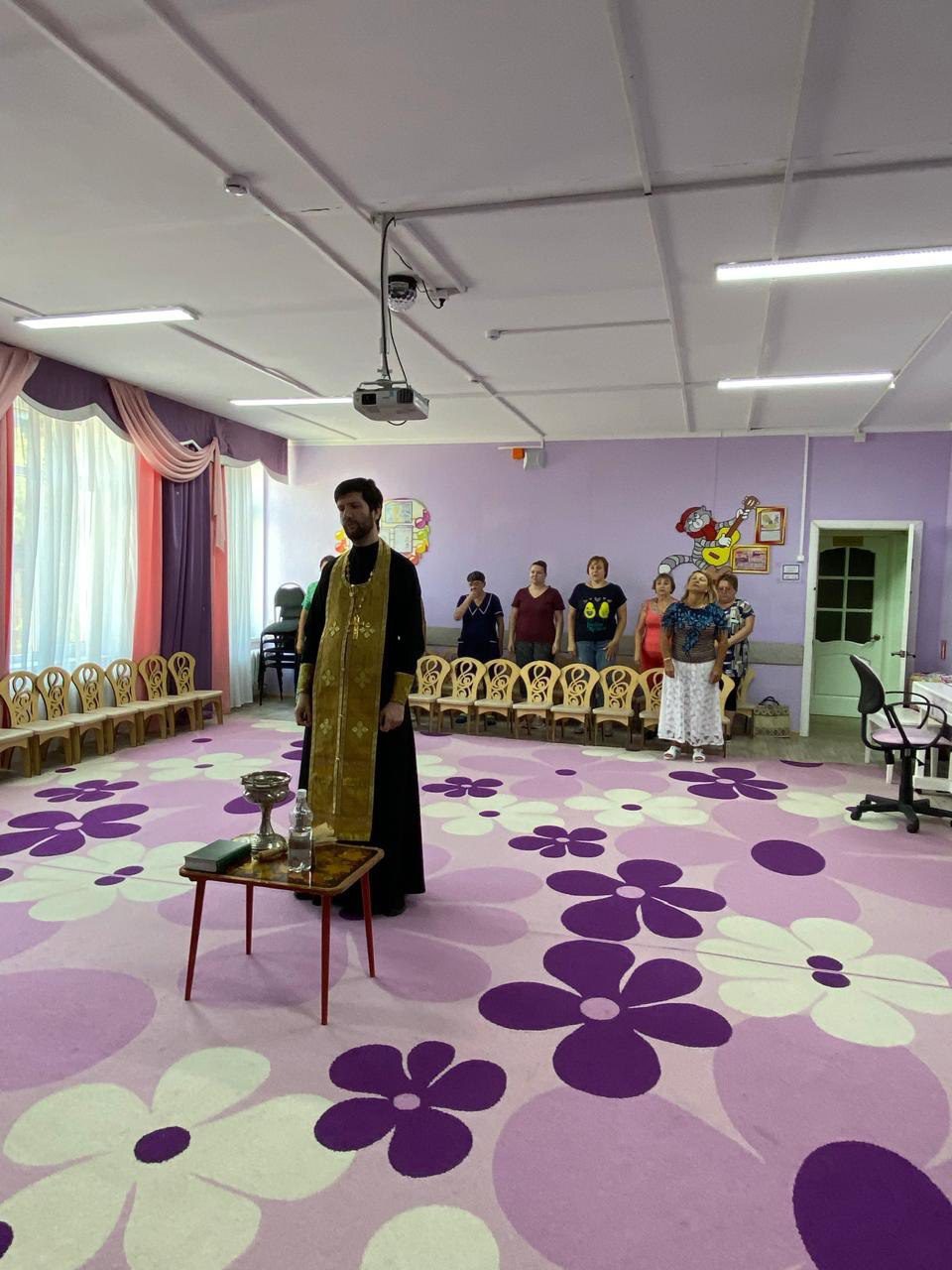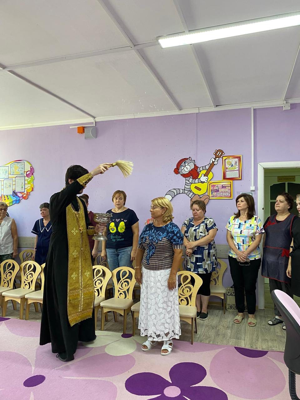 3 сентября клирик Георгиевского храма города Дедовска священник Николай Ризниченко посетил детский сад №2 «Радуга», где совершил молебен на начало учебного года. Священнослужитель пожелал преподавателям и воспитателям помощи Божией в предстоящих трудах. Также после молебна священник окропил святой водой помещения детского сада