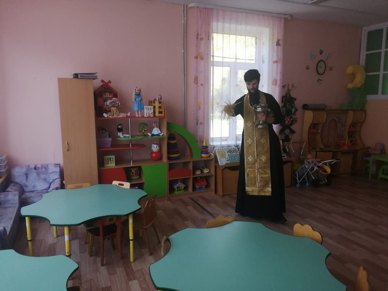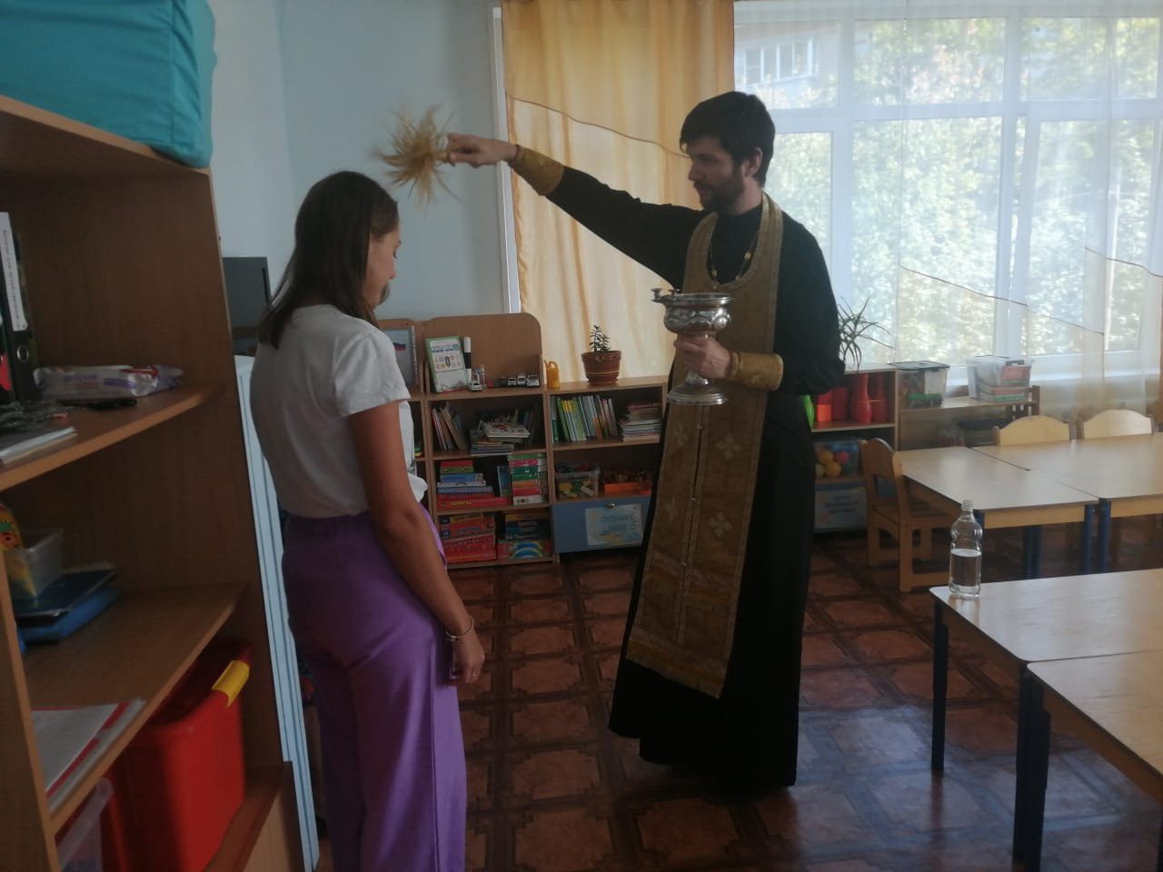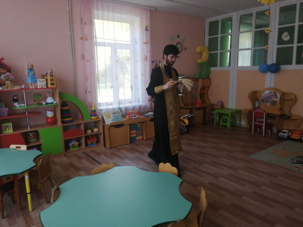 3 сентября клирик Георгиевского храма города Дедовска священник Николай Ризниченко посетил детский сад №2 «Радуга», где совершил молебен на начало учебного года. Священнослужитель пожелал преподавателям и воспитателям помощи Божией в предстоящих трудах. Также после молебна священник окропил святой водой помещения детского сада