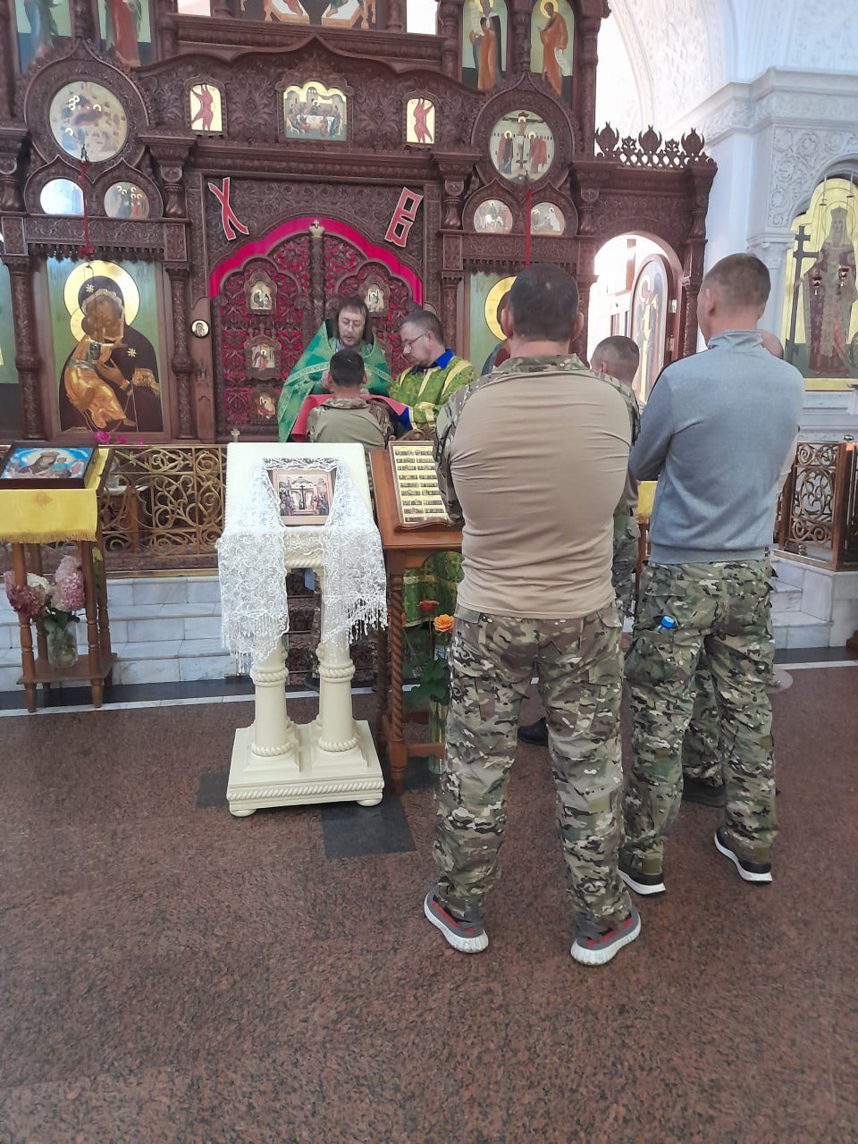 18 сентября в храме Крестовоздвижения с.Дарна настоятель храма протоиерей Константин Волков, ответственный в Истринском благочинии за взаимодействие с Вооруженными силами и правоохранительными учреждениями, причастил всех желающих добровольцев, совершил молебное пение о даровании добровольцам духовного и телесного здоровья в несении им предстоящей службы в рядах Российской Армии. В завершении молебна священнослужитель сказал им напутственные слова, пожелал помощи Божией в их нелегком ратном служении и окропил всех присутствующих святой водой, а также подарил на молитвенную память иконы и молитвы.