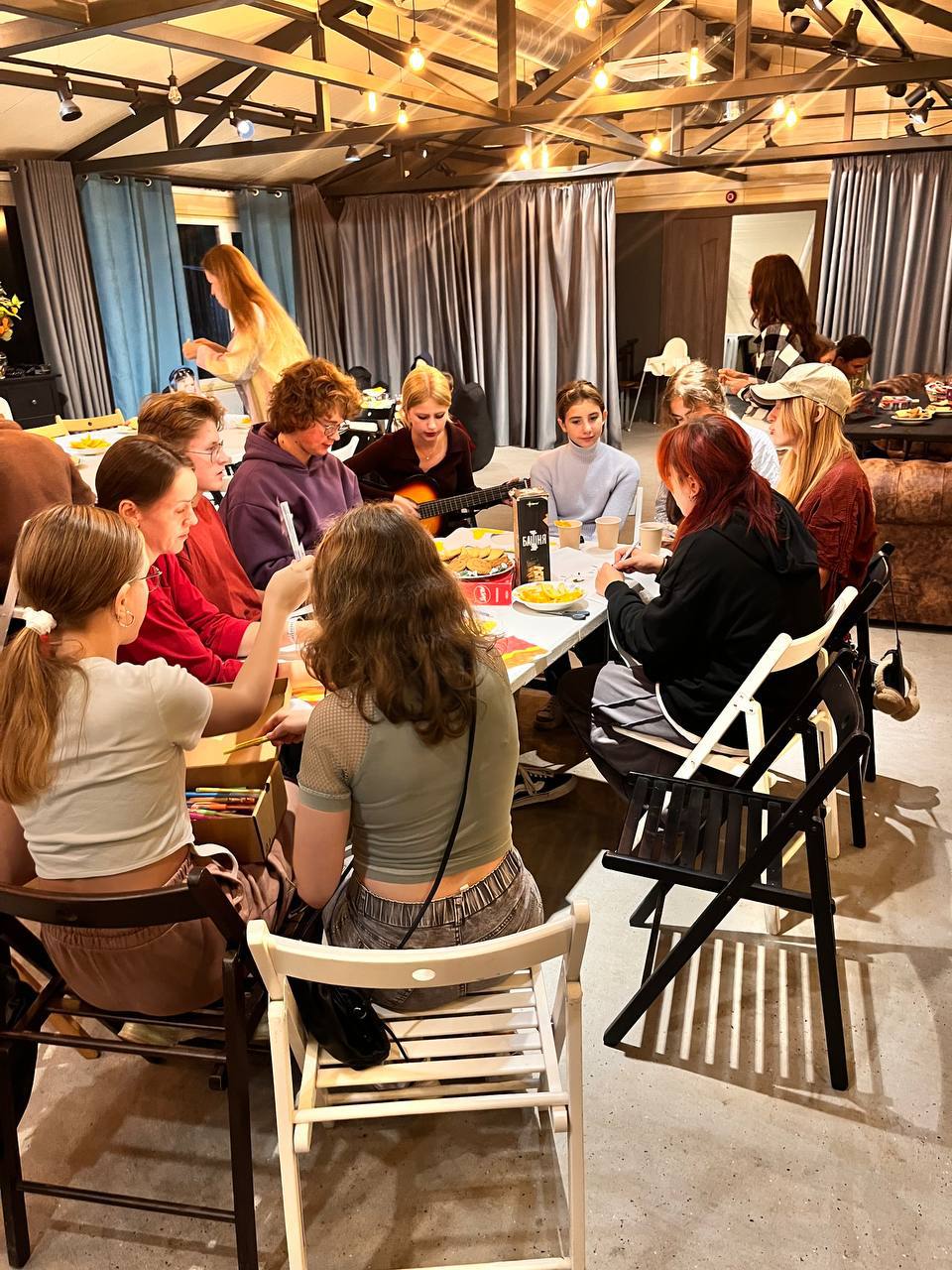 Если суббота в основном наполнена беседой с отцом Павлом, то пятница получается очень творческой. Прошло 4 мастер-класса по игре на гитаре. Ребята быстро обучаются и уже начинают выходить на сцену.