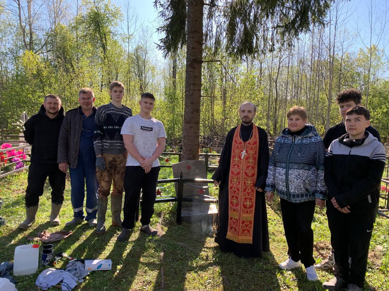 2 мая, настоятель Богородицерождественского храма д. Бухолово иерей Андрей Николаев с приходской молодежью привели в порядок ограду братского захоронения времен ВОВ, которое находится на Бухоловском кладбище. Во время покраски ограды, отец Андрей отслужил панихиду по павшим воинам. В завершении батюшка пообщался с подрастающим поколением и были намечены планы по обустройству клумбы для цветов и выравнивании памятника.