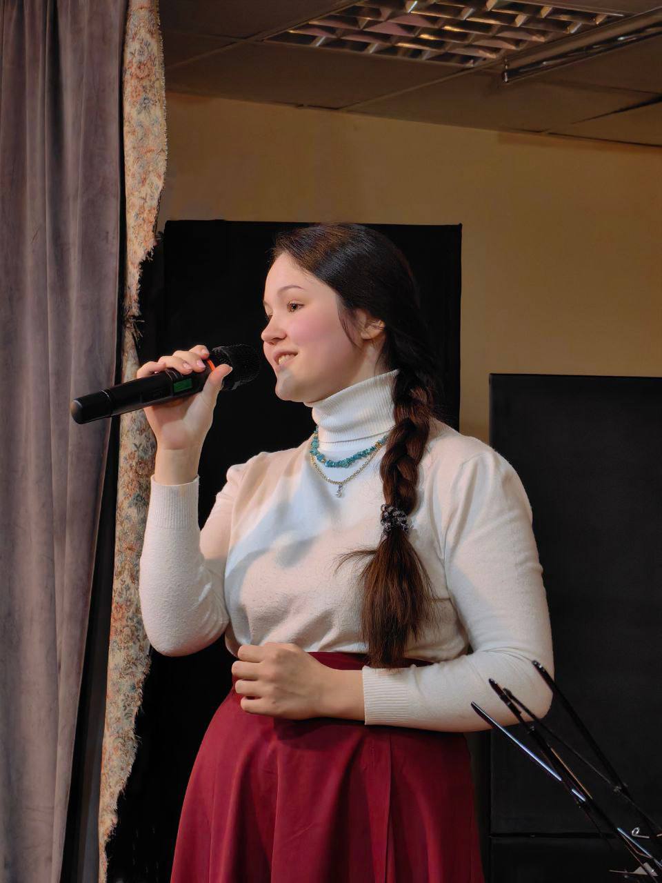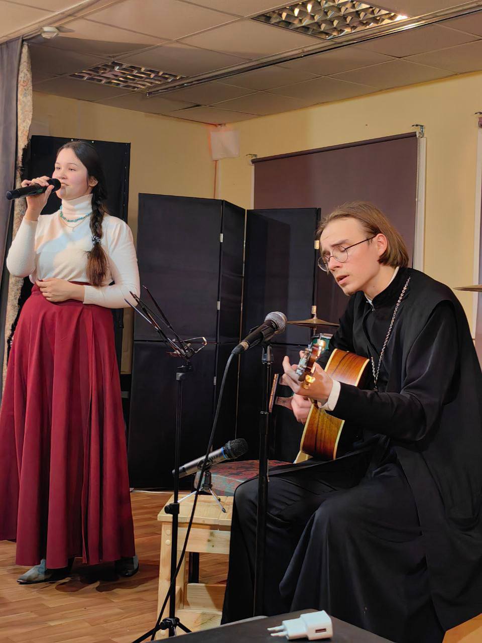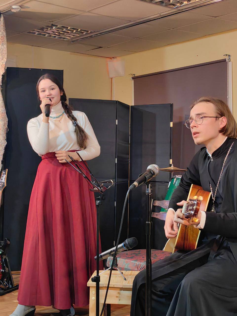 Мероприятие прошло в библиотеке храма Рождества Христова г. Звенигорода и было организовано Отделом по делам молодёжи (Звенигородского благочиния) совместно с Русским молодёжным театром “Серебряные крылья”, режиссер которого – Марина Владимировна Котельникова, – и молодые представители его труппы – явились ведущими музыкального вечера.