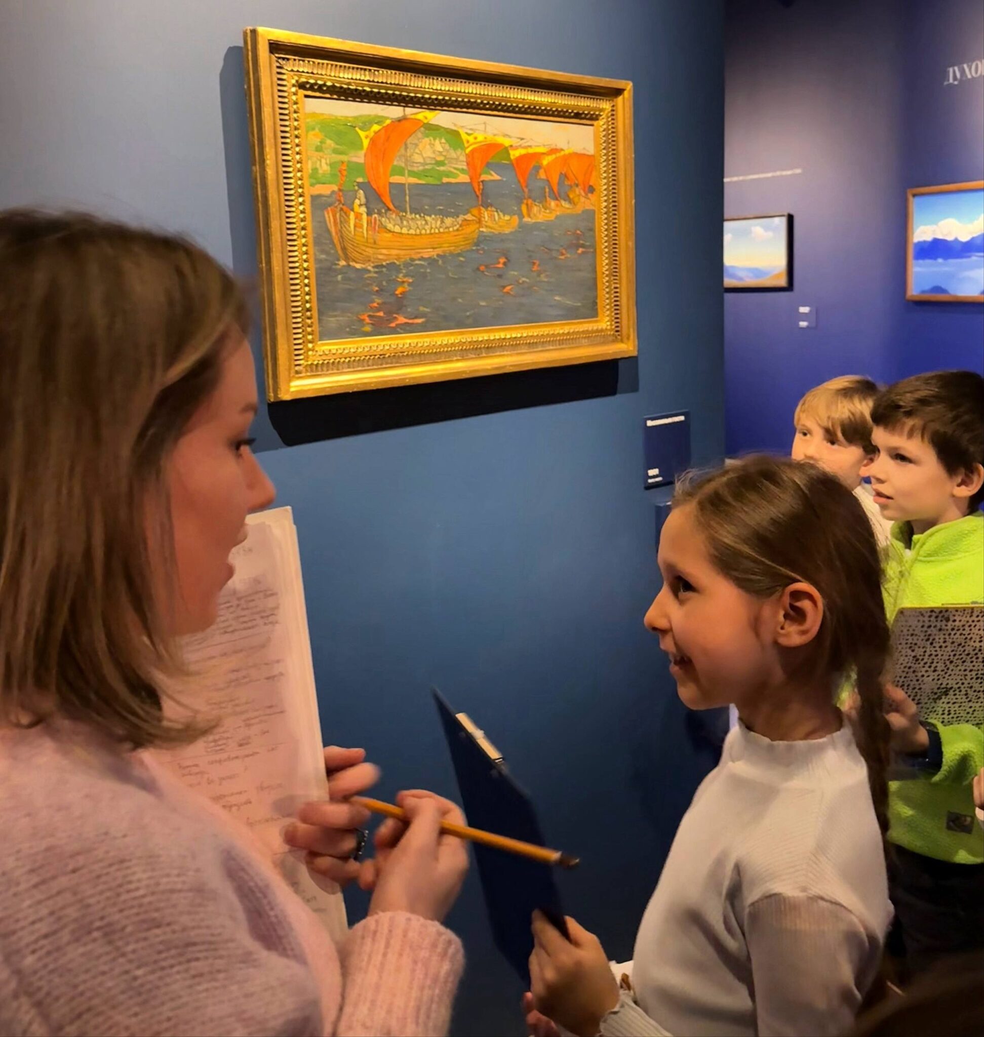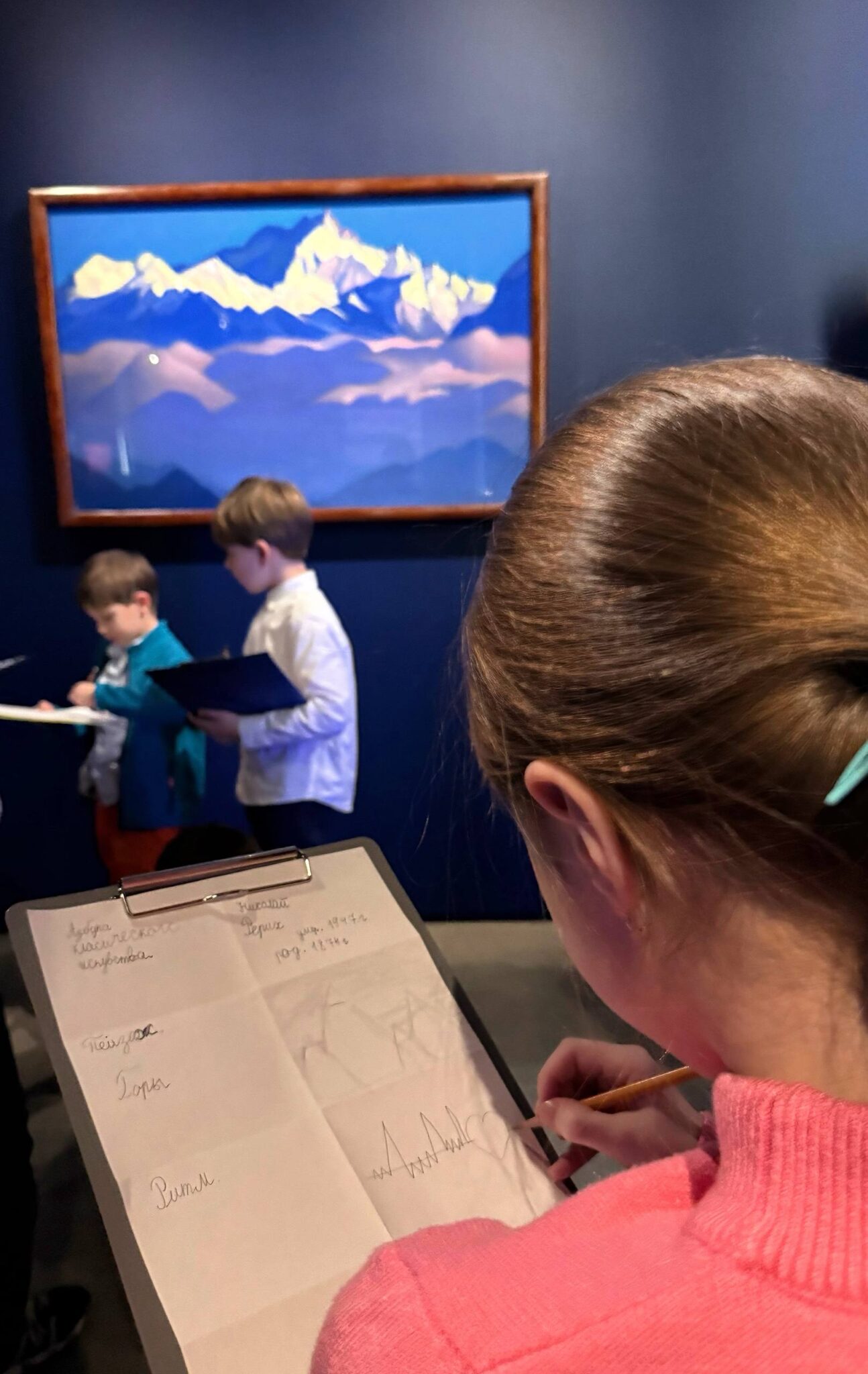 Семейная школа «Покров» посетила Звенигородский манеж, где преподаватель живописи провела музейное занятие.