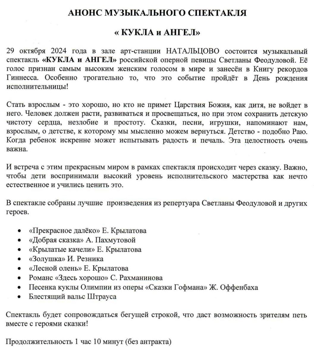 Музыкальный спектакль “КУКЛА И АНГЕЛ”
