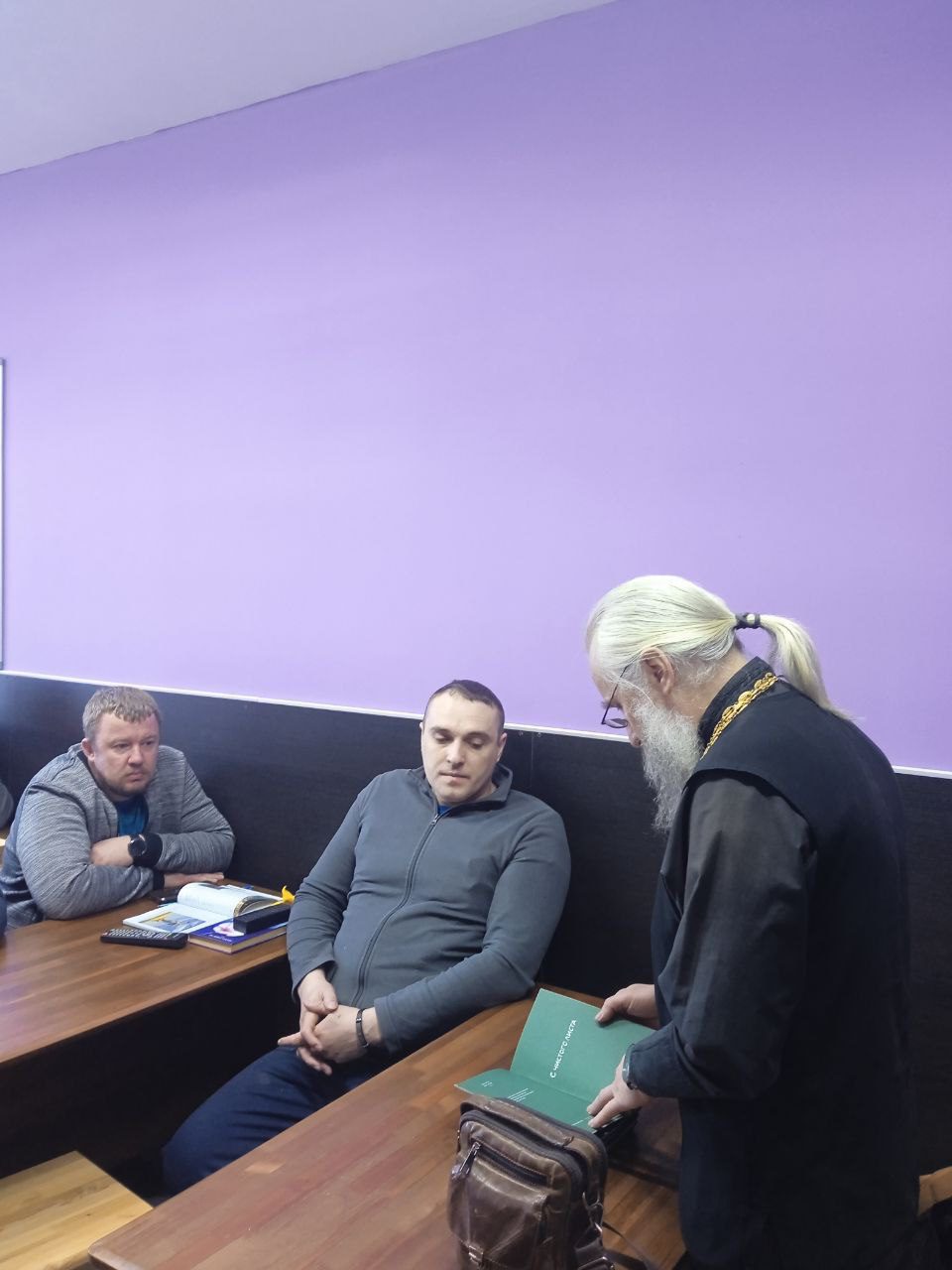 Иерей Владимир провёл беседу с руководством и осуждёнными, ответил на вопросы. В завершении встречи, священник передал миссионерские листки для информационного стенда и книги в библиотеку исправительного учреждения.