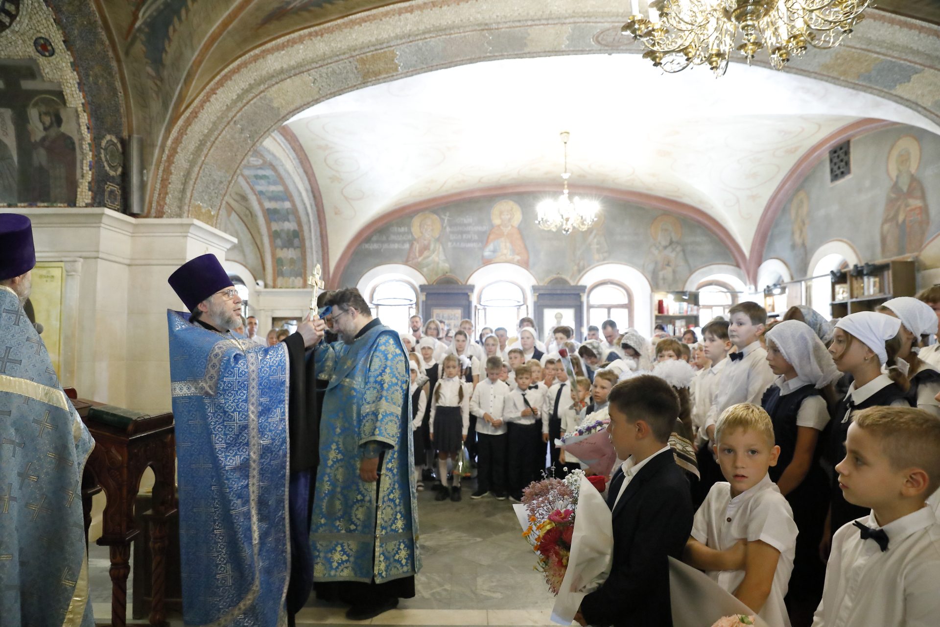 2 сентября начала свой 23-ий учебный год Свято-Георгиевская гимназия, единственная православная школа г.о. Красногорск. На молебен в Знаменский храм пришли ученики, учителя и родители. 23 первоклассника стали гимназистами в новом учебном году. А всего в стены гимназии пришли 163 учащихся. Молитва об учащих и учащихся объединила всех под сводами храма. По окончании молебна с пожеланиями помощи Божией в новом учебном году ко всем обратился настоятель Знаменского храма, благочинный церквей Красногорского округа и директор гимназии протоиерей Владимир Шафоростов. Затем в Актовом зале гимназии состоялся праздник и был дан первый звонок 2024-2025 учебного года.