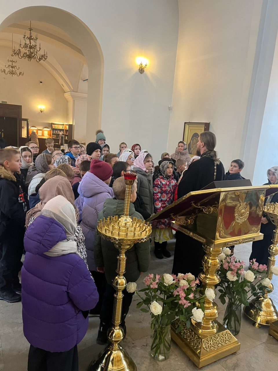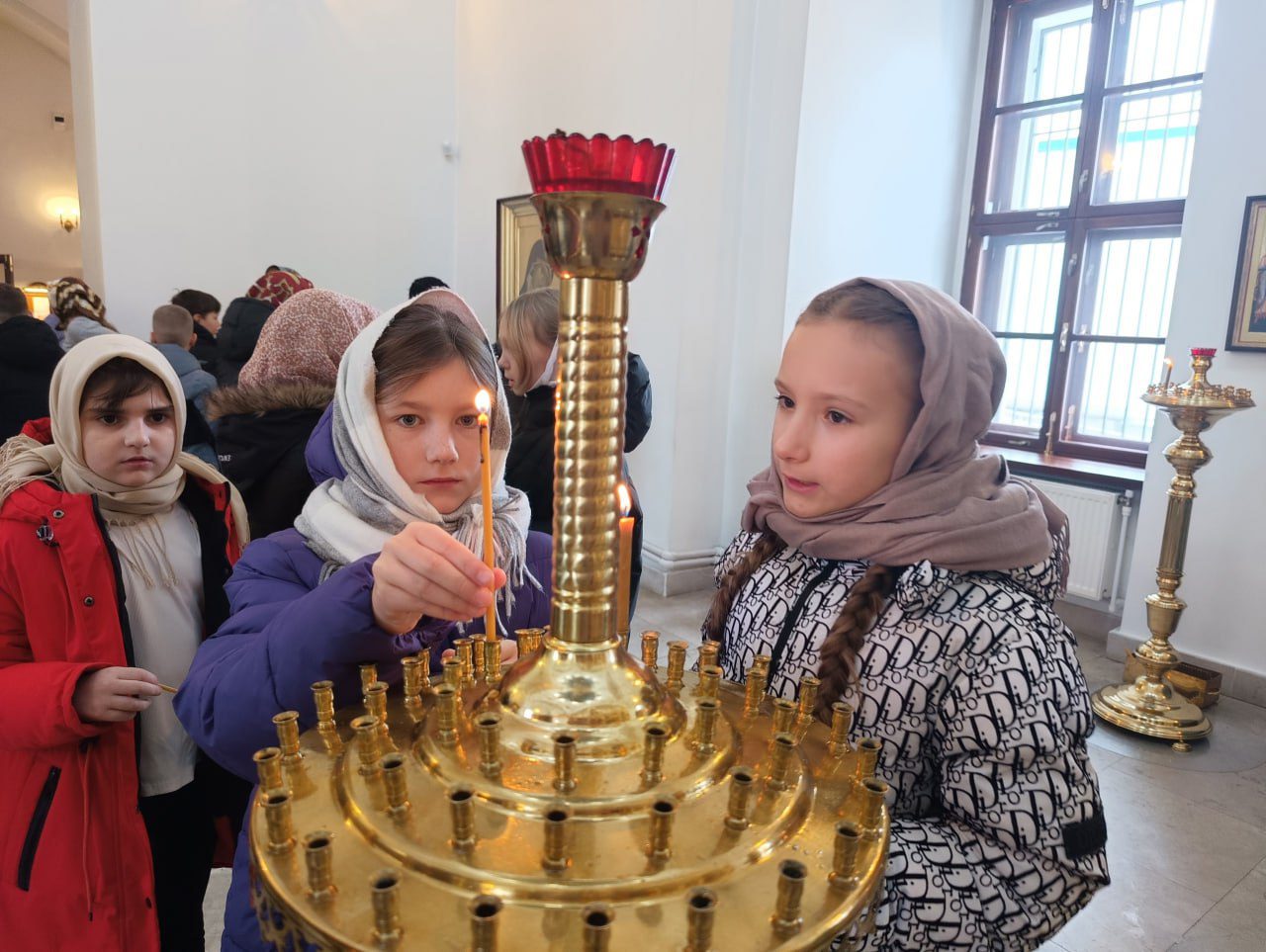 В завершении дети помолились перед образами и зажгли свечи.