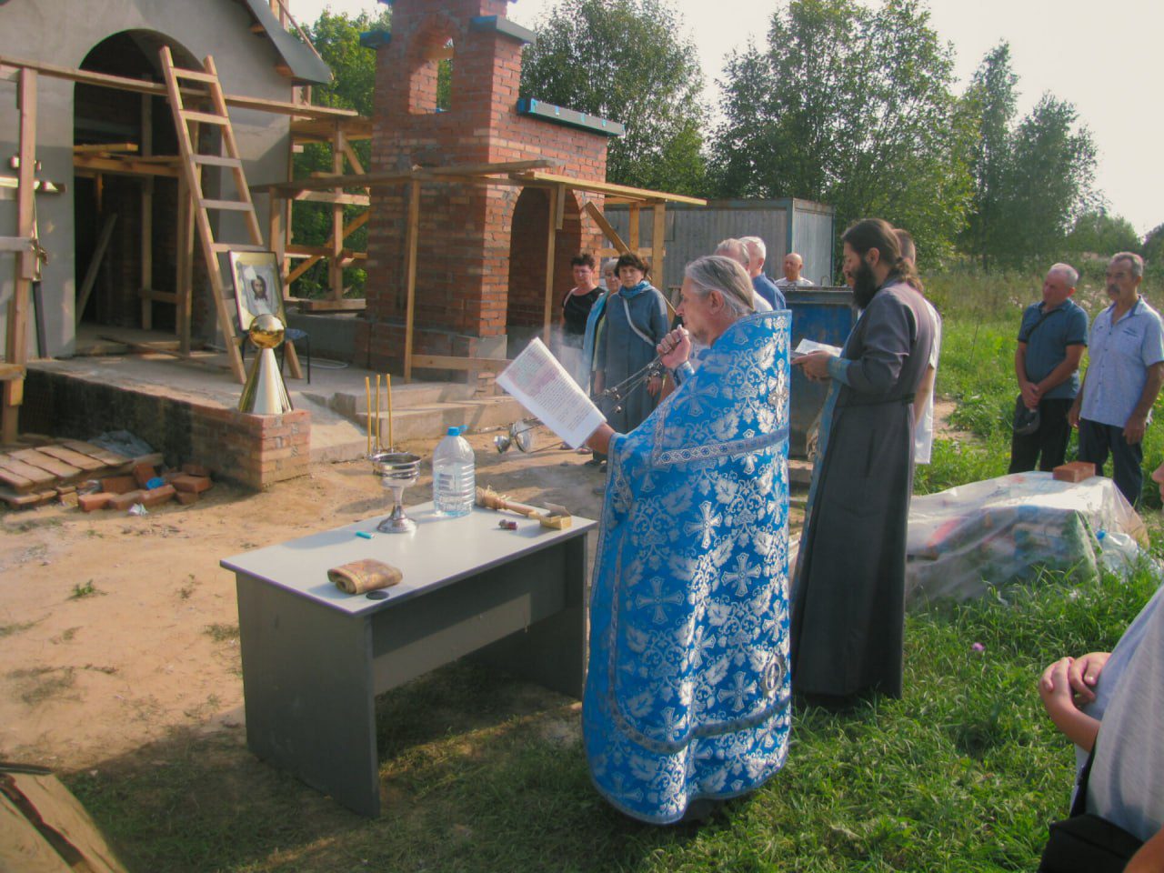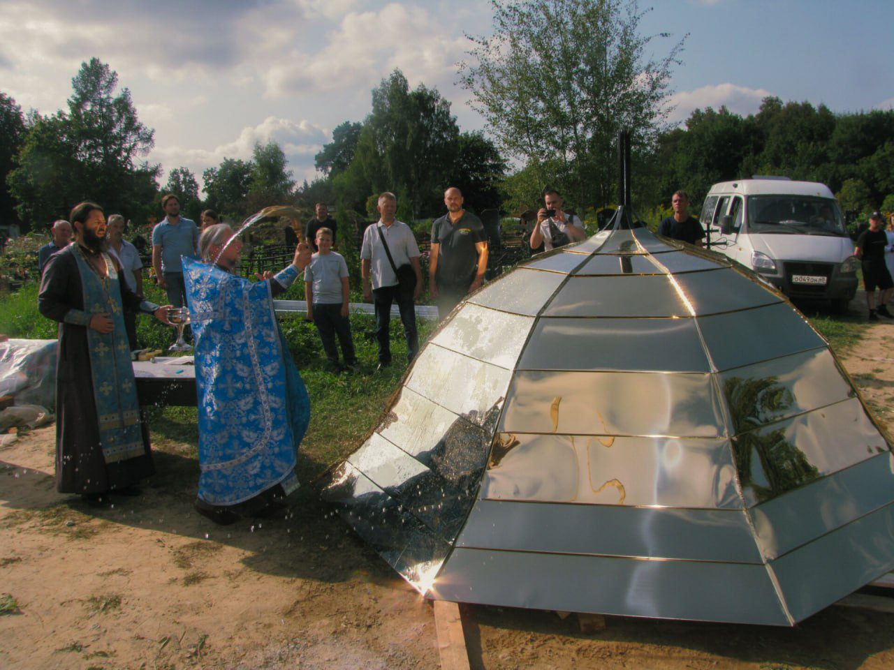 Освящение Креста на куполе часовни в честь благоверного великого князя Александра Невского на местном кладбище деревни Александрово