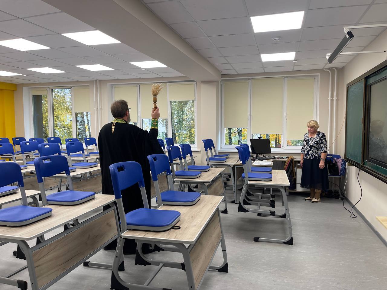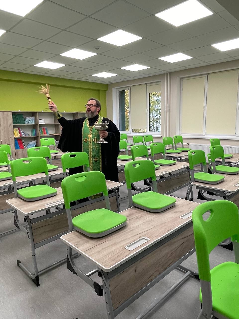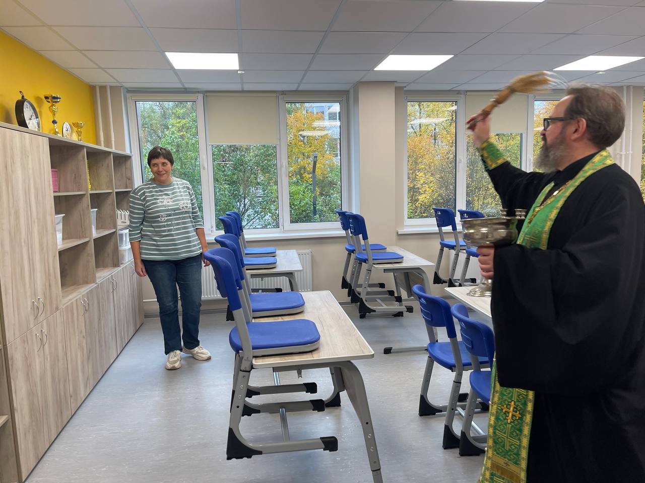 8 октября, настоятель Мироносицкого храма иерей Павел Малкин и клирик протоиерей Александр Вареников, по просьбе руководства школы, совершили чин освещения помещений здания МОУ «Лицей г. Истра» после проведения капитального ремонта.