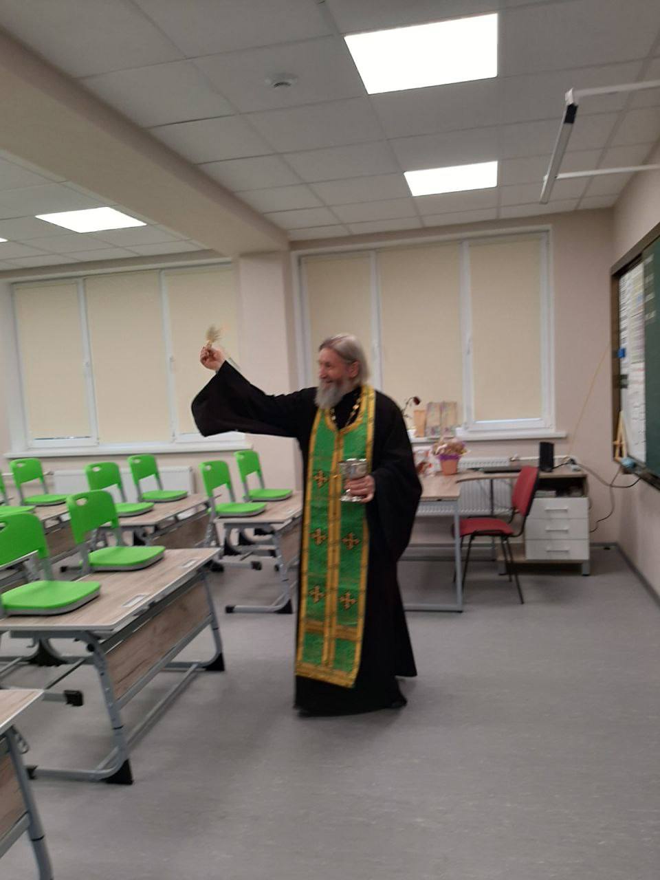 Священнослужители прошли по всему Лицею и окропили все классы и помещения.