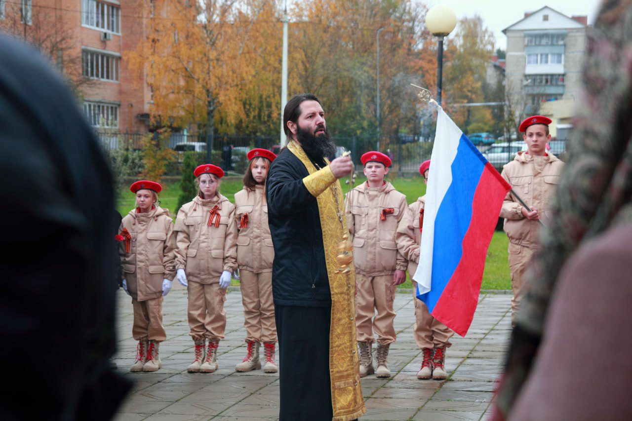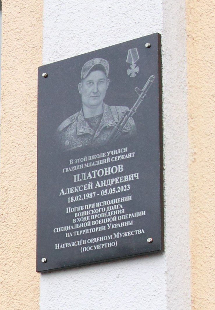 20 октября настоятель Казанского храма села Глебово г.о. Истра протоиерей Александр Чепрасов совершил освящение мемориальной доски на здании Глебовской средней школы в память воина Алексея Андреевича Платонова, погибшего в зоне СВО, посмертно награжденного орденом мужества и похороненного на аллее славы городского кладбища г. Истра. На мероприятии присутствовали кадетский класс, представители юнармии, вдова, мать и родственники погибшего.