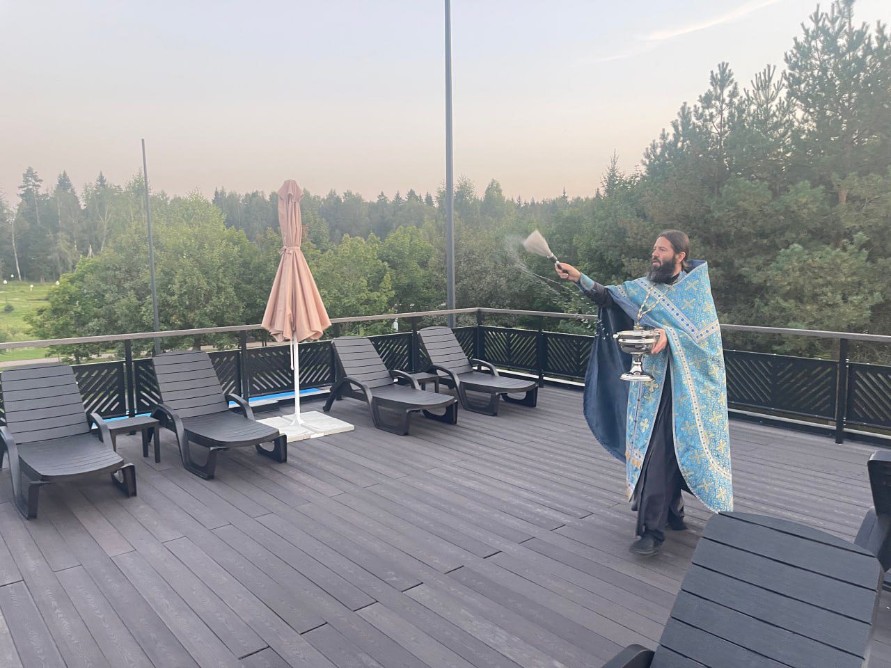28 августа 2024 года в Праздник Успения Пресвятой Богородицы состоялось освящение нового оздоровительного комплекса с открытым бассейном в Филиале ПАО “Газпром” “Пансионат “Союз” настоятелем Казанского храма с. Глебово протоиреем Александром Чепрасовым совместно с руководством Филиала. После молебного пения на призывание Святаго Духа пред началом всякого добраго дела, на котором присутствовали сотрудники организации, отец Александр прошел по двум этажам корпуса и окропил святой водой комнаты и холлы здания. Поздравляя сотрудников Пансионата “Союз” со значимым для его развития событием священнослужитель пожелал коллективу помощи Божией и благословил всех присутствующих.