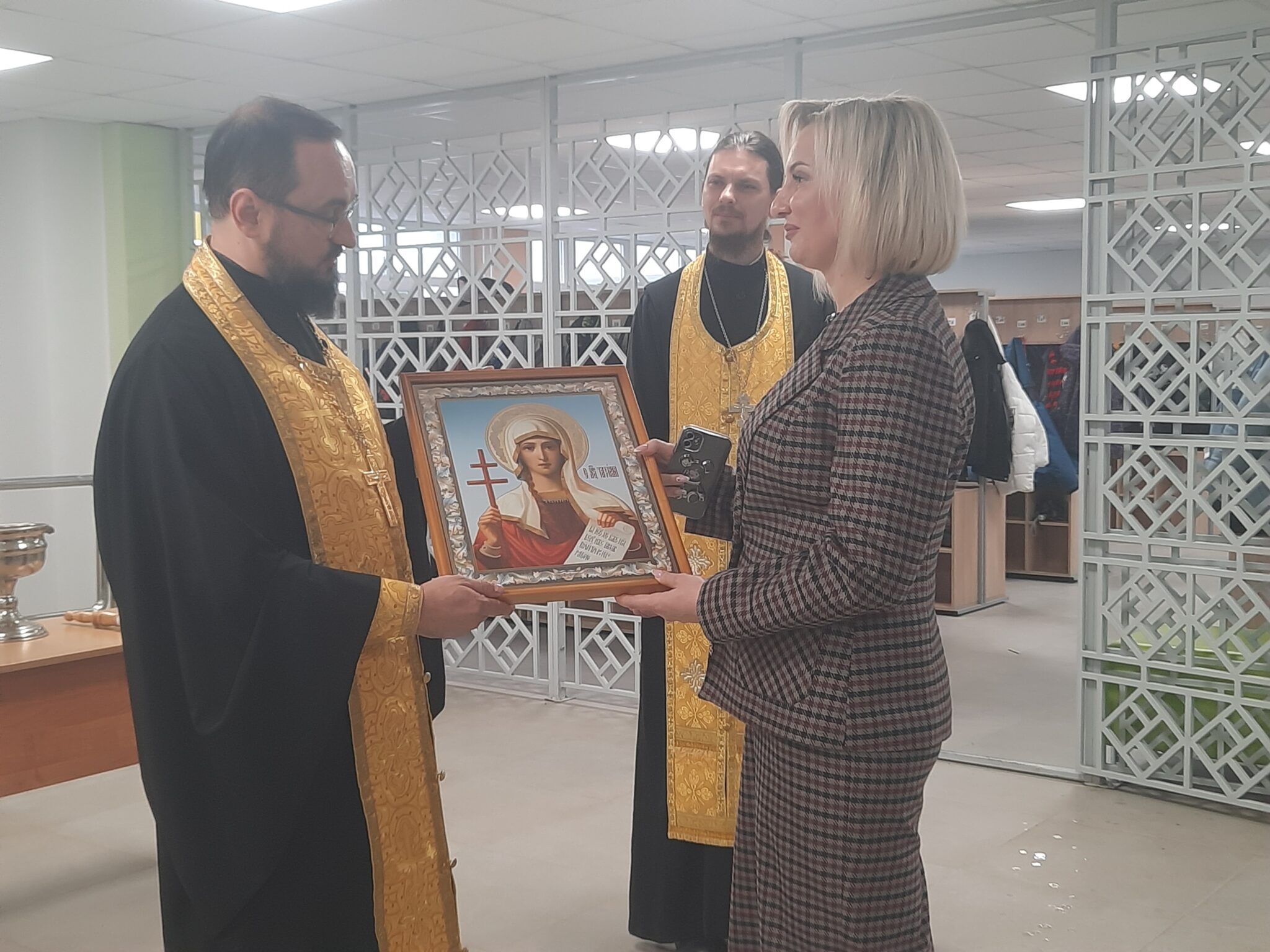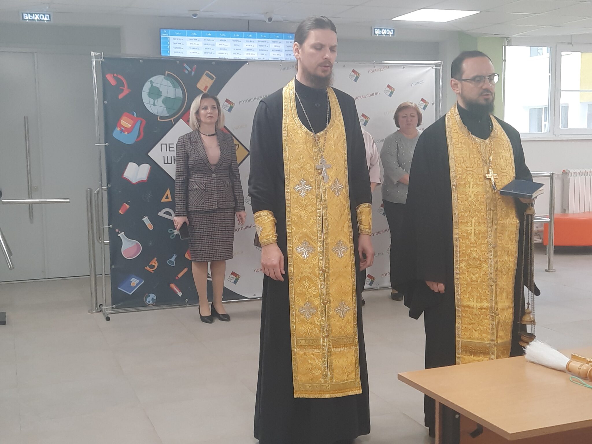 В канун 90 летия средней общеобразовательной школы № 1 городского округа Лотошино благочинный округа священник Алексий Кошелев в сослужении клирика Преображенского храма п. Лотошино, ответственного по образованию и катехизации, священника Димитрия Дегтева совершили освящение здания школы после капитального ремонта. На молебне присутствовали директор школы Матюхина А.М. и педагоги. В благословение отец Алексий передал директору икону мученицы Татианы.