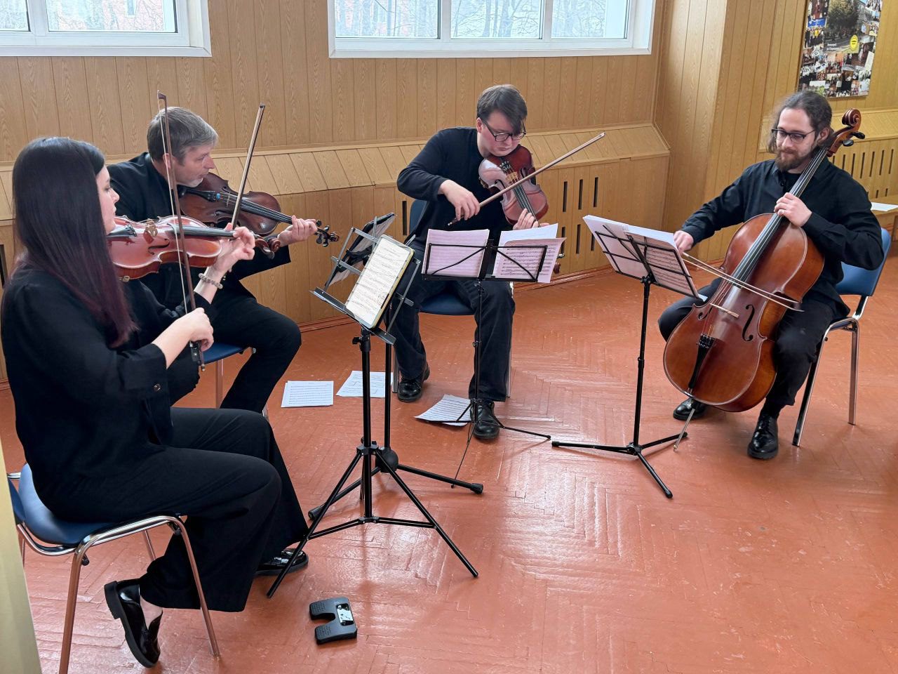 В фойе актового зала участникам мероприятия была представлена выставка “Русская Православная Церковь в годы Великой Отечественной войны”, любезно предоставленная Московским отделением ИППО. Гости праздника могли насладиться виртуозной игрой струнного квартета Московской консерватории, в исполнении которого прозвучали произведения Моцарта, Рахманинова и Баха.