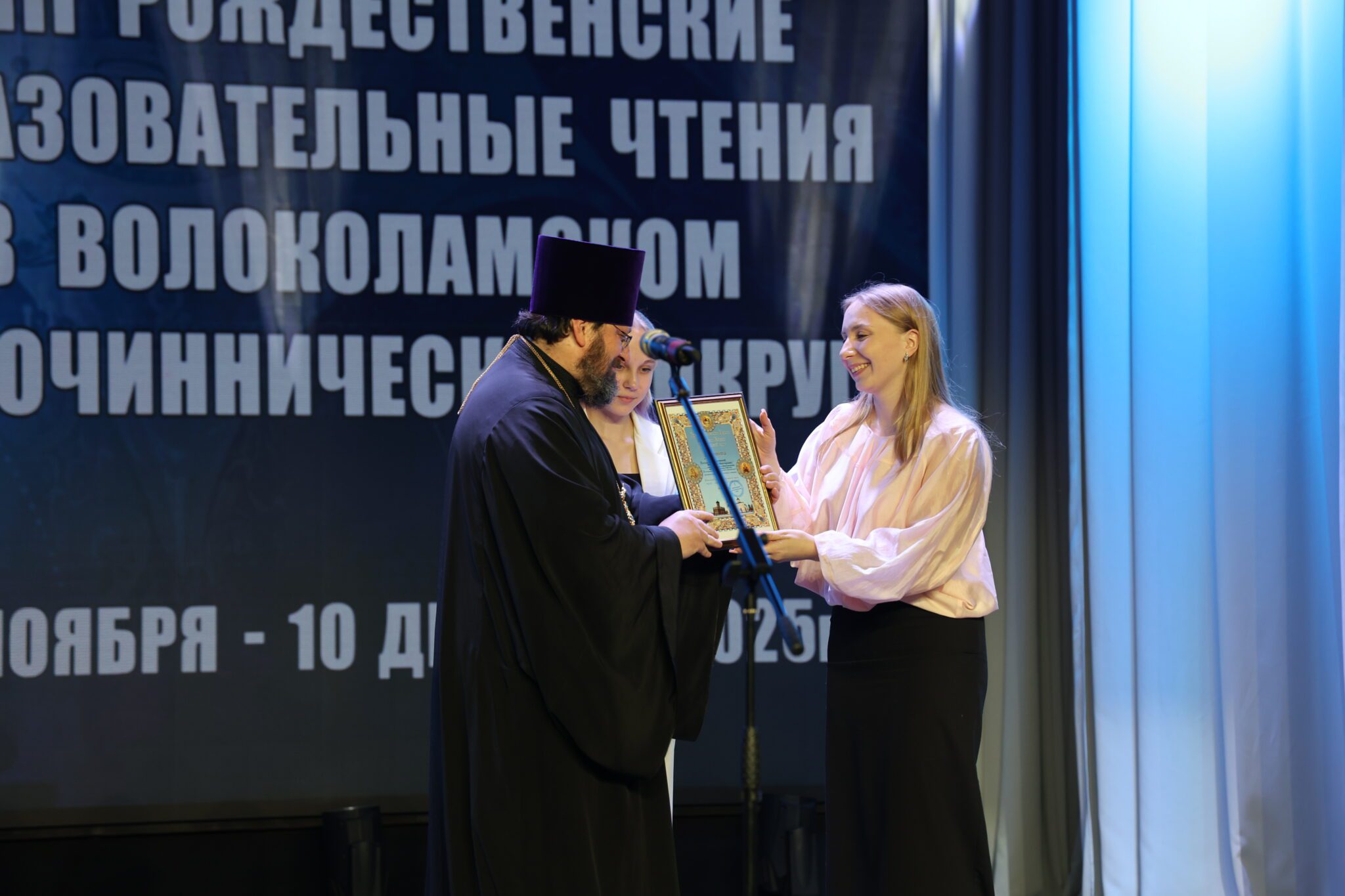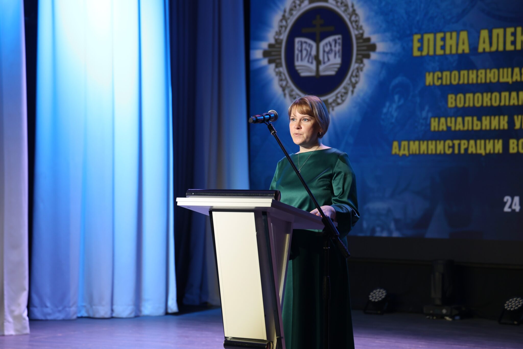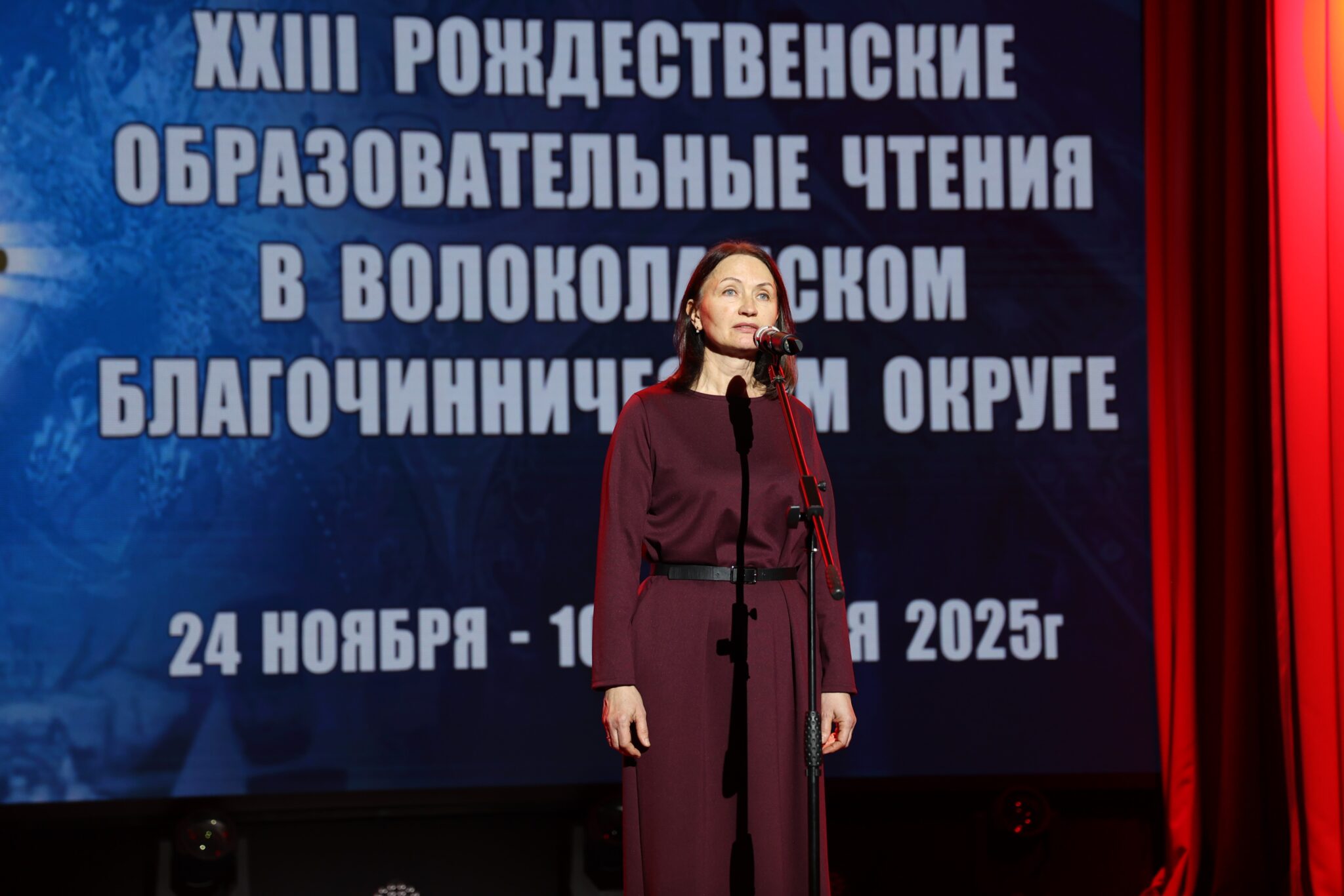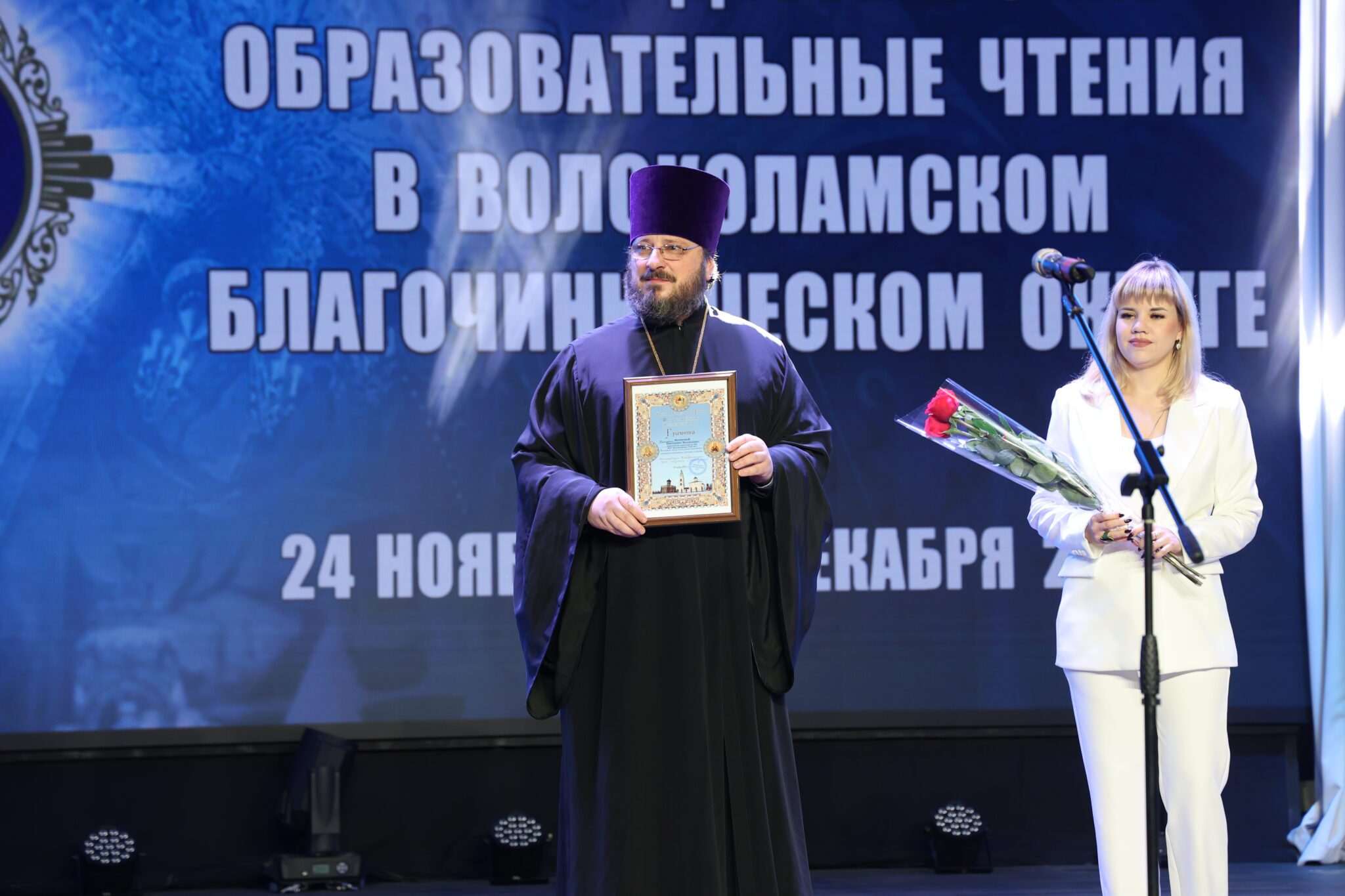 Со сцены к участникам с приветственными словами обратились исполняющая обязанности заместителя Главы Волоколамского муниципального округа, начальник Управления системой образования Елена Александровна Медведкова, депутат Московской Областной Думы Владимир Сергеевич Вшивцев, председатель Совета депутатов Волоколамского муниципального округа Татьяна Николаевна Шаргаева. С традиционным докладом по теме чтений выступил благочинный Волоколамского округа протоиерей Герман Григорьев.