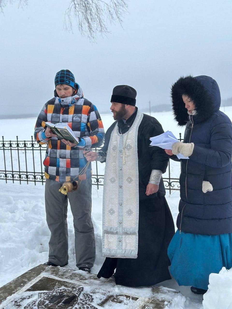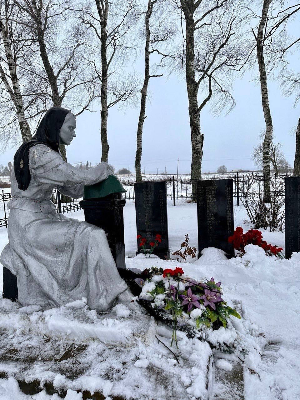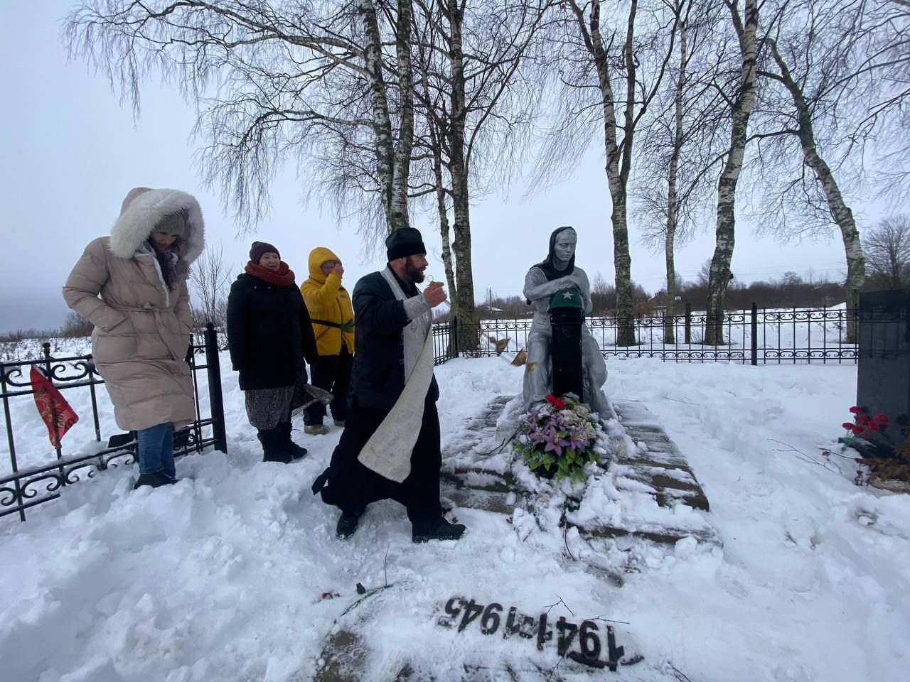Сегодня, 19 декабря, особый день для прихода Храма Рождества Пресвятой Богородицы в деревне Шитьково. В день памяти Святителя Николая чудотворца в 1941 году окрестные деревни были освобождены от немецко-фашистских захватчиков. Село Казаново, где располагался Храм, было сожжено захватчиками, и более не восстанавливалось. В Храме был совершен благодарственный молебен за дарование победы, а после божественной литургии прихожане почтили память павших воинов на братской могиле деревни Соснино, где похоронено более 400 солдат. Очистив памятник от снега прихожане храма с настоятелем отцом Димитрием возложили цветы и отслужили панихиду.