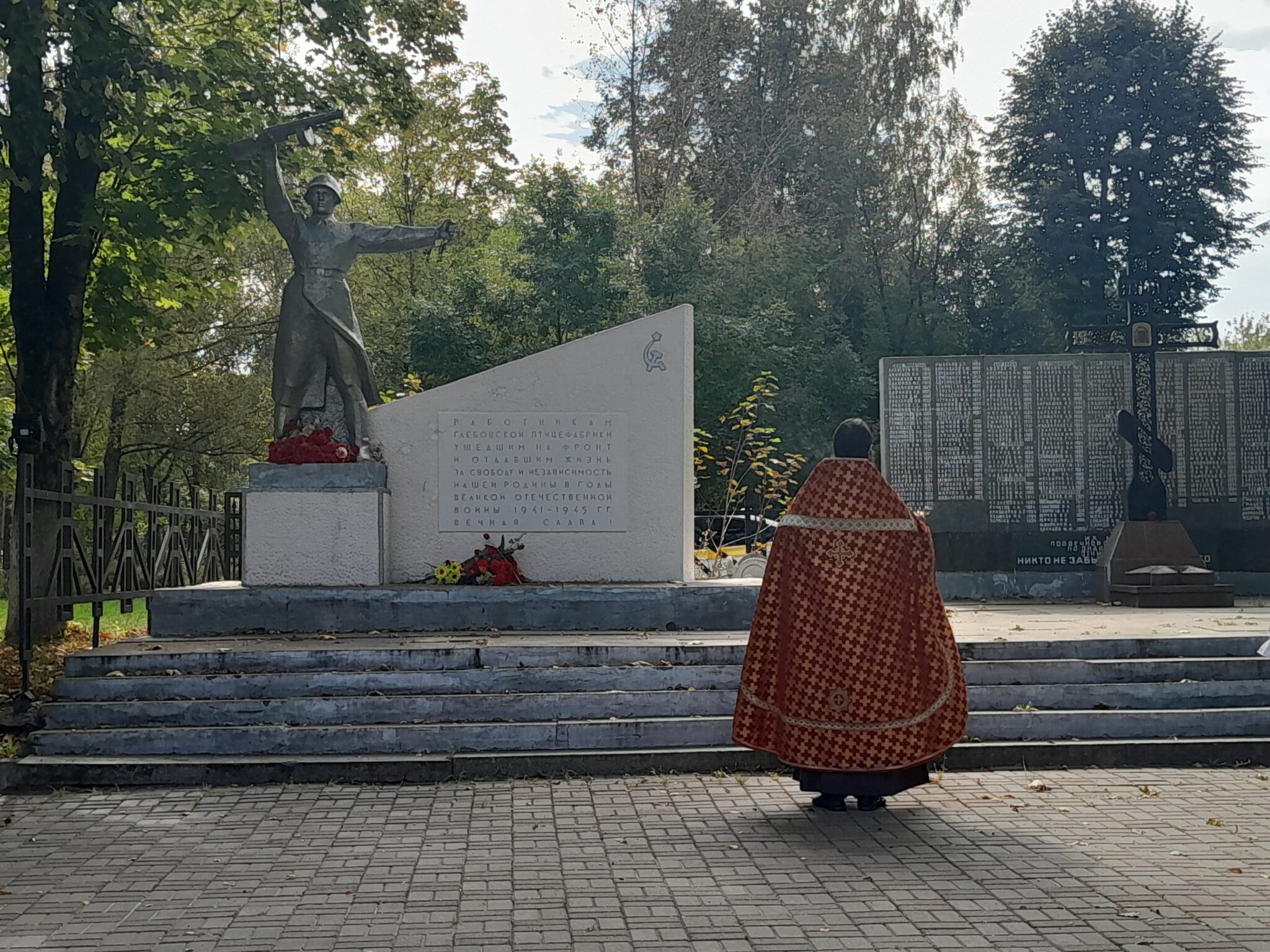 11 сентября в праздник Усекновения главы Иоанна Предтечи и в день особого поминовения всех православных воинов настоятель Казанского храма села Глебово протоиерей Александр Чепрасов совершил заупокойную панихиду о воинах на поле брани убиенных у мемориала погибших воинов поселка Глебовский. Совместную молитву разделили ученики двух кадетских классов и представители Юнармии Глебовской средней школы. Священнослужитель рассказал детям о празднике, о подвиге воинов и необходимости молитвенной памяти усопших.