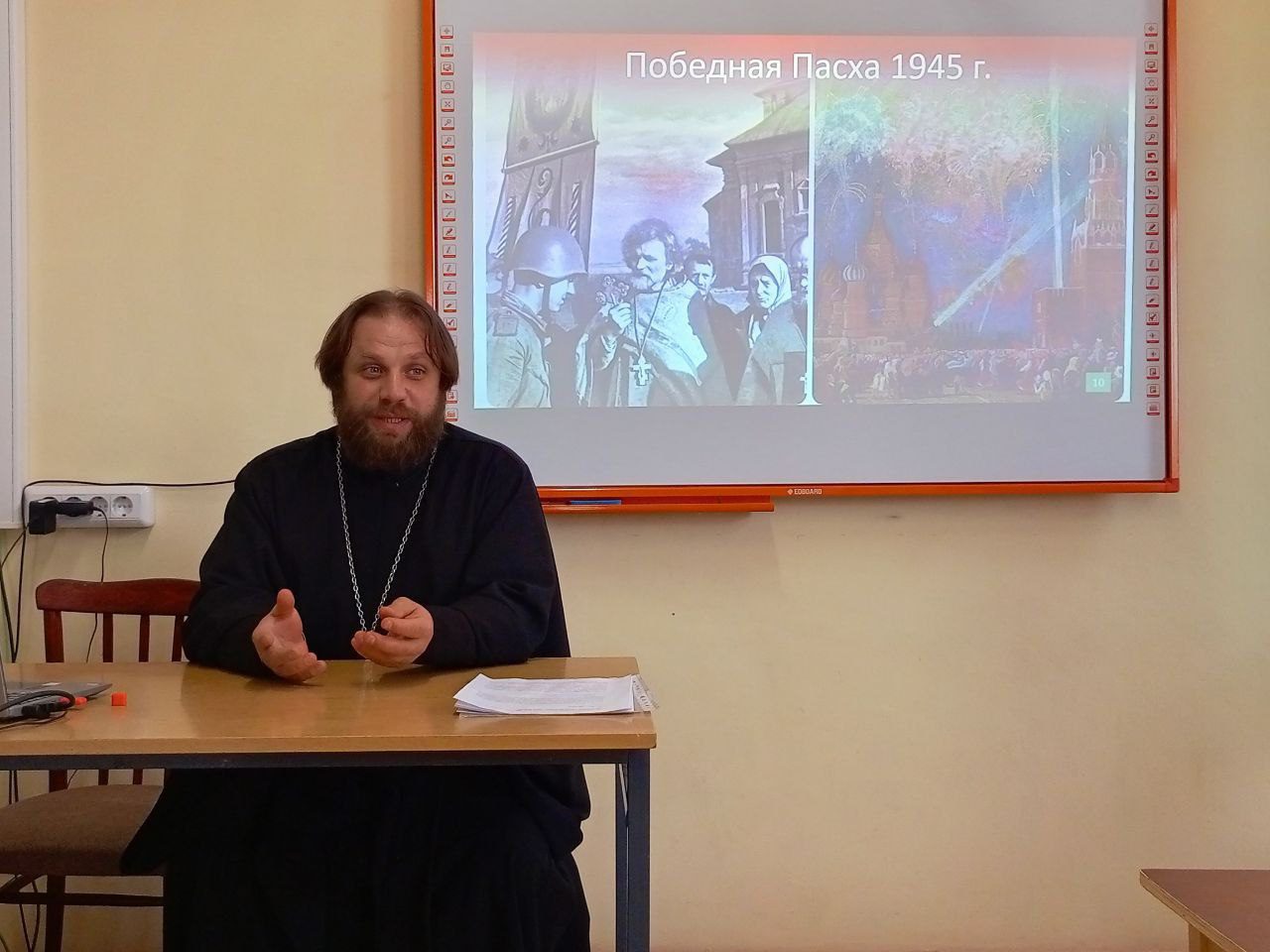 МОУ “Детгородковская СОШ” дошкольное отделение №10 посетил настоятель храма Рождества Пресвятой Богородицы священник Димитрий Пищерков. Священник провел теоретический семинар для педагогов на тему: “Пасха Христова – наша Победа”. Отец Димитрий рассказал педагогам о празднике Пасха, рассказал о моментах дня Победы, которые совпали в 1945 году со Светлой Седмицей. После встречи с педагогами отец Димитрий вручил Грамоты и сладкие подарки воспитанникам дошкольного отделения №10, участвовавшим в выставке “Пасхальное яйцо – 2025”. Батюшка поблагодарил воспитанников и их родителей за активное участие в пасхальной выставке и выразил надежду на дальнейшее активное участие в конкурсах.