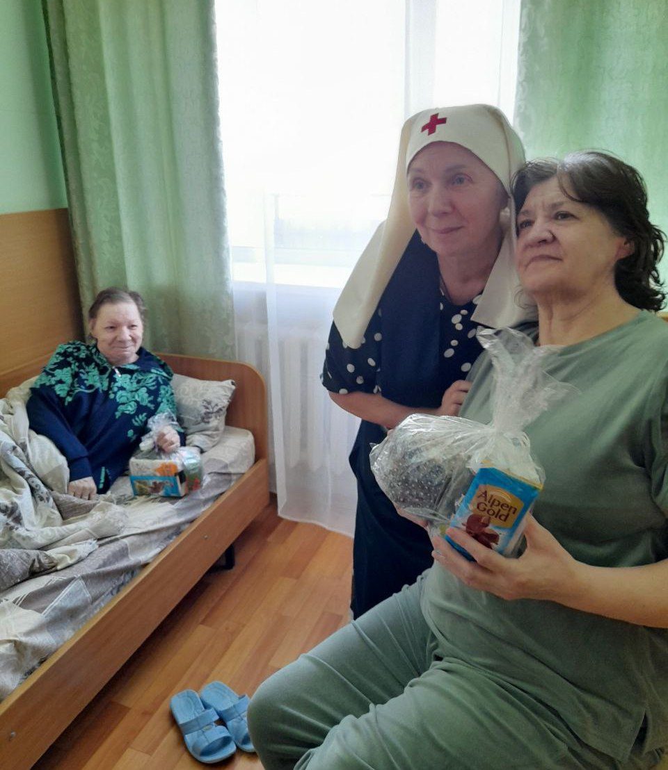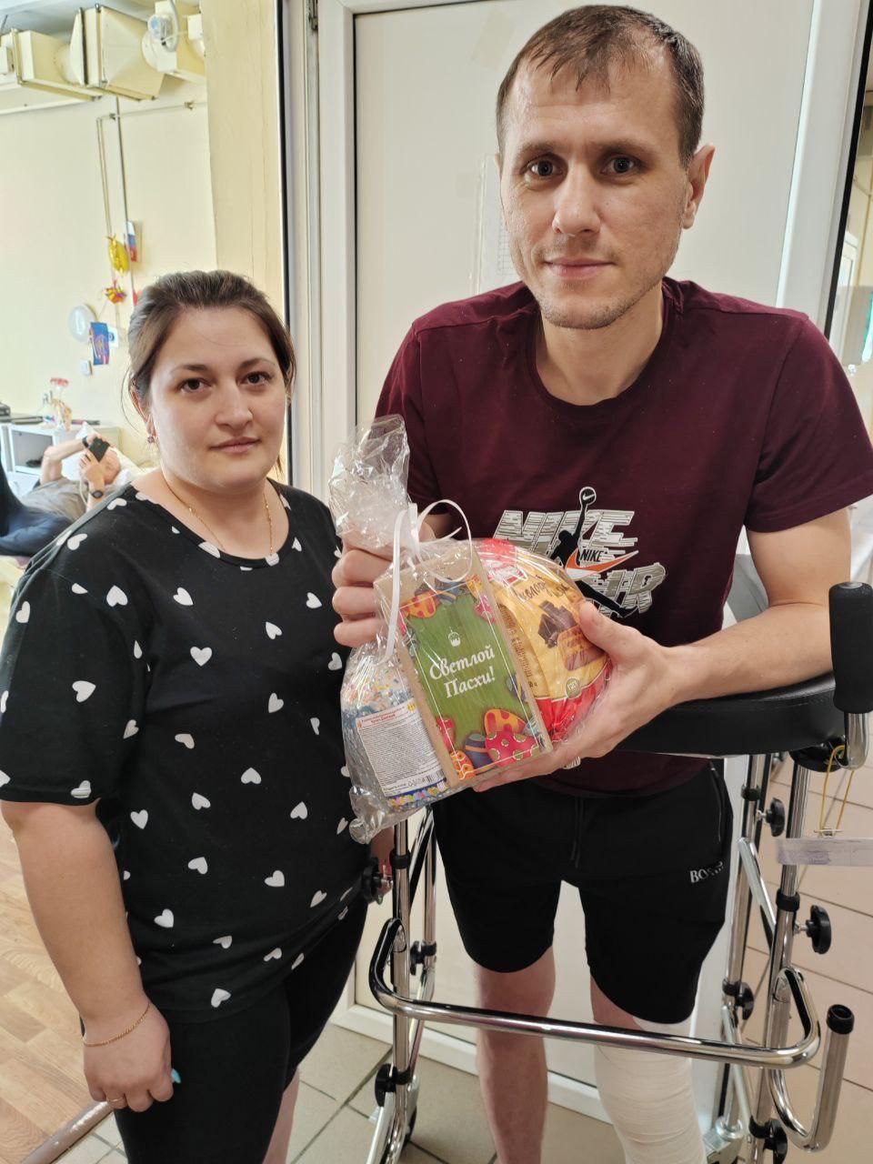 В тот же день сестры милосердия Звенигородского сестричества во имя преподобномученицы Великой княгини Елисаветы при Христорождественском храме г. Звенигорода посетили 45-ю горбольницу и санаторий Минобороны, где поздравили с Пасхой Христовой воинов-участников специальной военной операции, проходящих лечение и реабилитацию, и вручили праздничные наборы в количестве 160 штук. Бойцы были очень рады и с благодарностью приняли подарки.