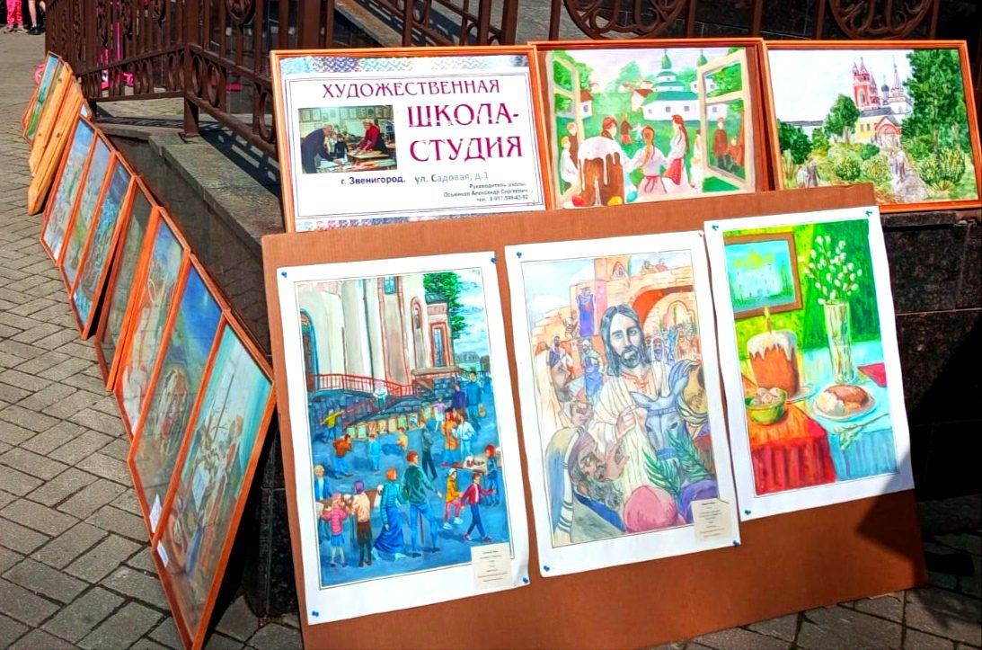 19 апреля на территории Вознесенского собора г. Звенигорода состоялась выставка детских рисунков ежегодного конкурса «Пасха Красная». В конкурсе приняли участие учащиеся Художественной школы-студии г. Звенигорода. Всего было сделано более 80 работ. Лучшие работы были переданы на районный конкурс «Пасхальный свет и радость».