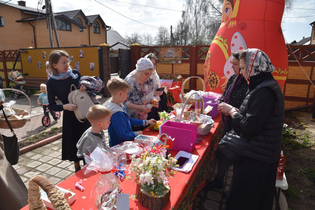 В преддверии Пасхи около храма преподобного Серафима Саровского п. Лотошино работала благотворительная ярмарка, где можно было приобрести картины, иконы, сумки, коврики, свечи, мыло, разнообразные поделки – всё это сделано с любовью руками детей из воскресной учебно – воспитательной группы при храме. Все вырученные средства будут направлены на поддержку семей участников СВО и наших защитников.