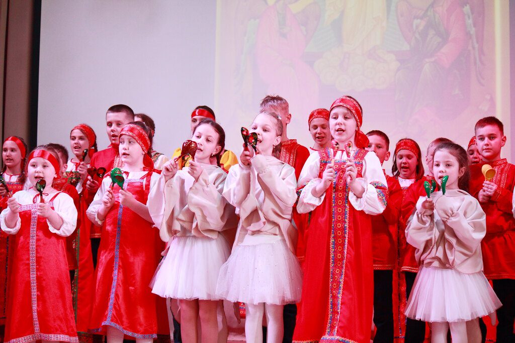 Участники концерта исполнили песни про Воскресение Христово, читали стихи о мироносицах, о прощении, любви к ближнему, играли на ложках и танцевали.