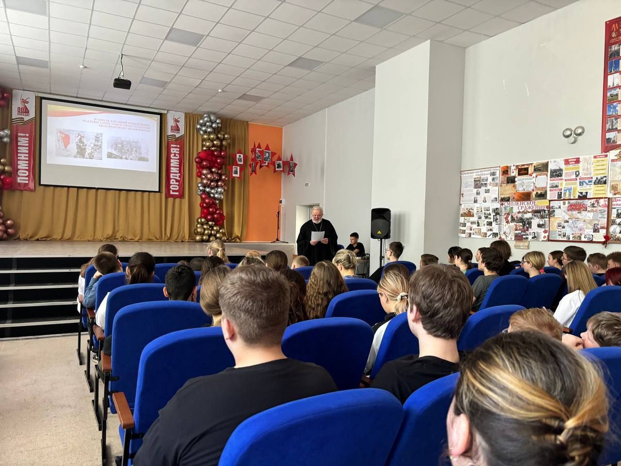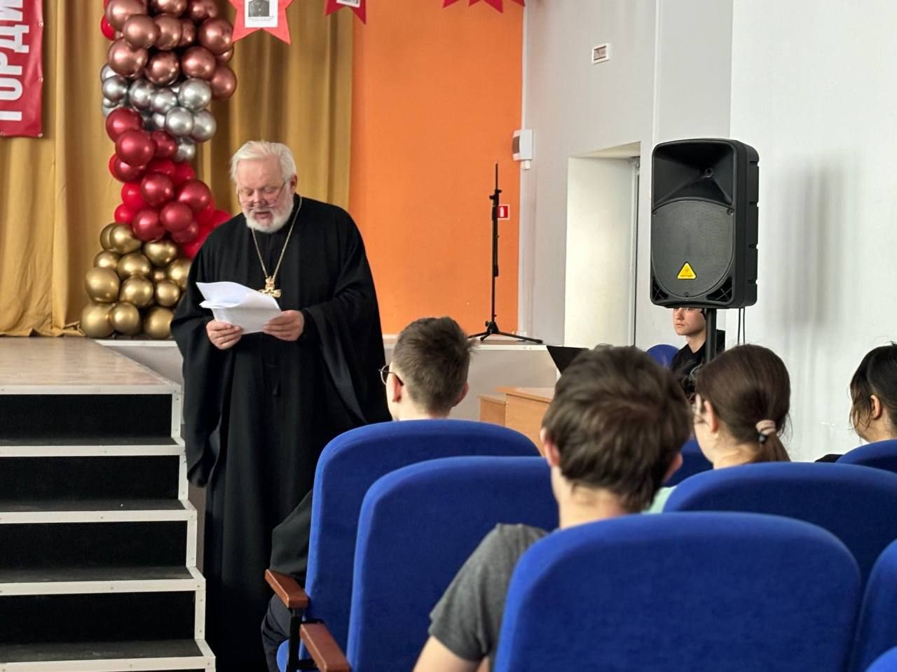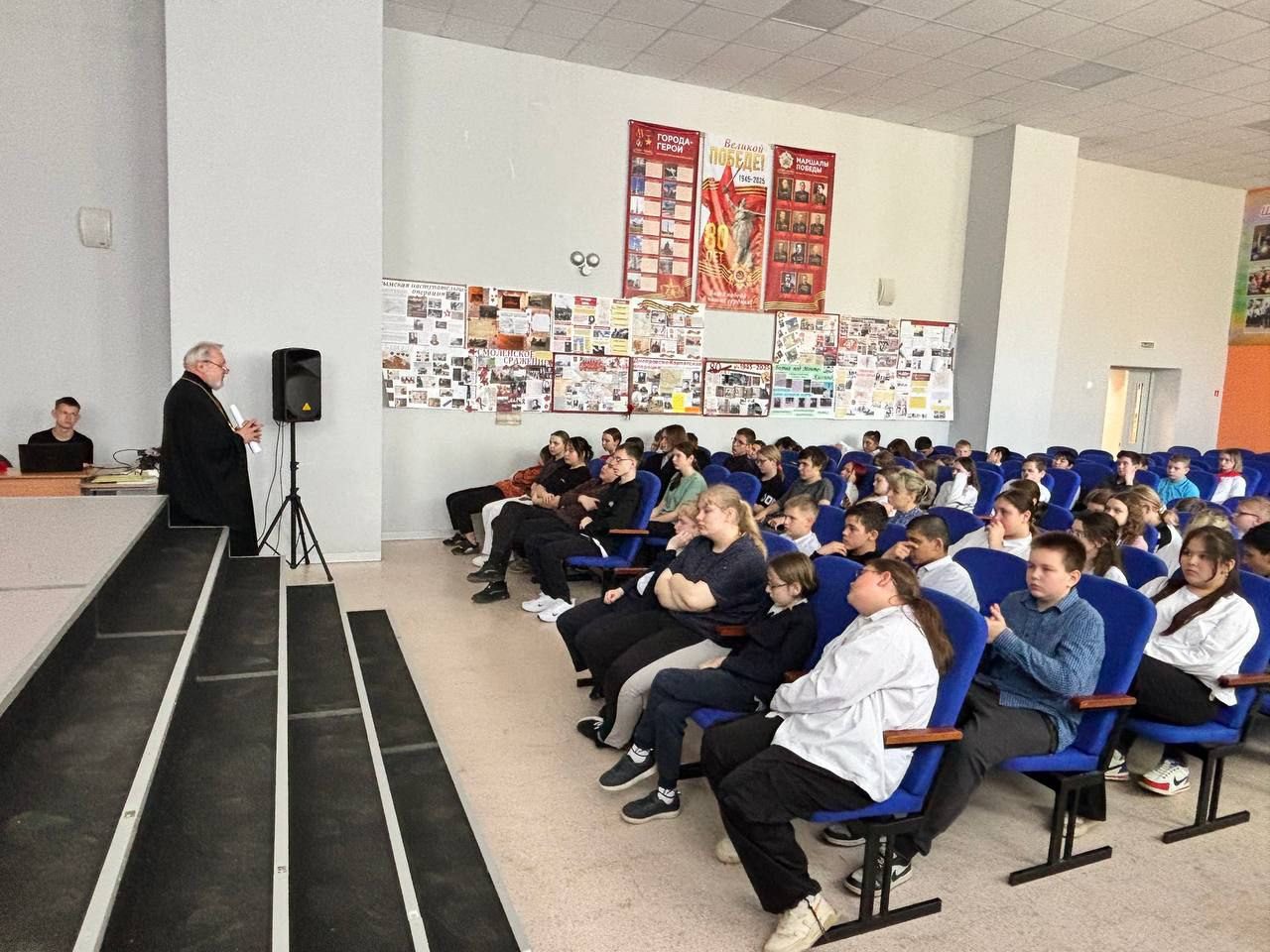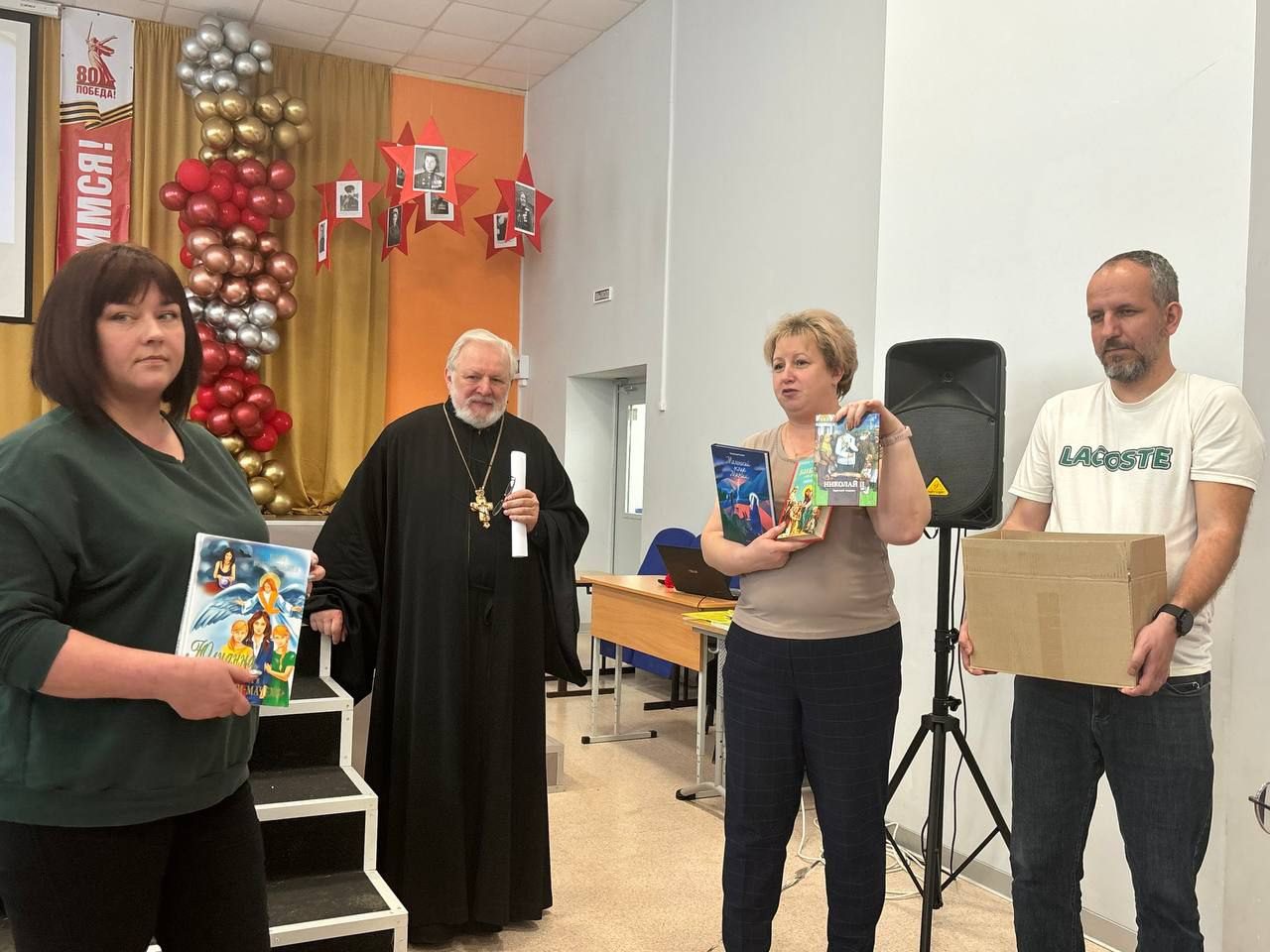В завершение встречи протоиерей Вадим Владышевский передал в школьную библиотеку книги духовного содержания, включая произведения Юлии Вознесенской, Тамары Крюковой, протоиерея Александра Торика и «Детскую Библию». Беседа завершилась ответами на вопросы учащихся, что позволило глубже осмыслить духовное значение Великой Победы.
