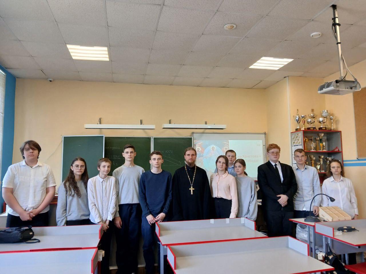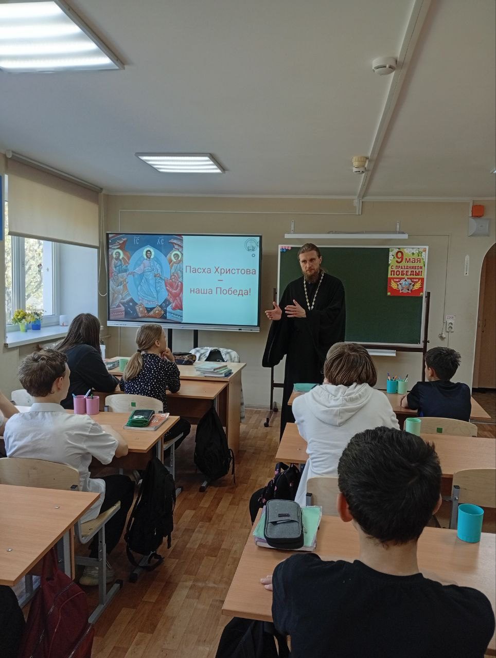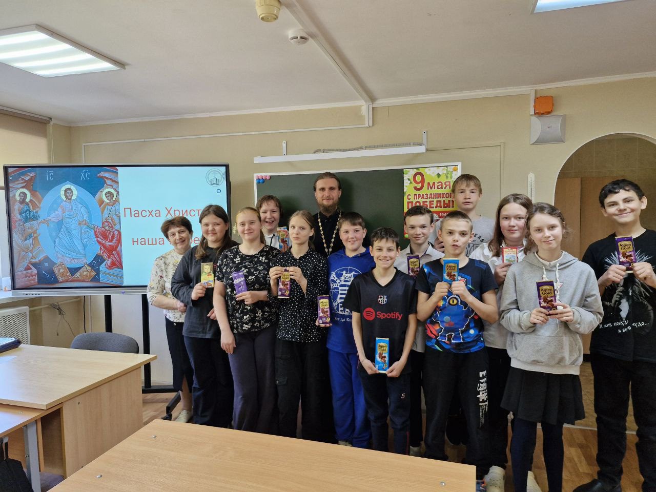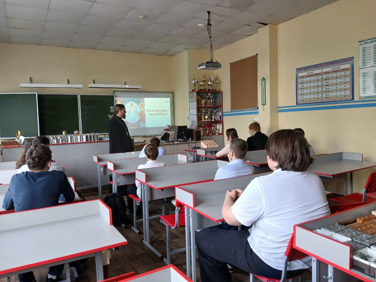 16 мая в рамках пасхальной миссионерской акции «Пасха Христова – наша Победа» прошла встреча настоятеля Петропавловского храма священника Алексия Вареникова со школьниками Новопетровской СОШ и школы – интернат. На уроках священник рассказал ученикам о глубоком значении Пасхи Христовой для каждого человека и об истории празднования этого светлого праздника в годы Великой Отечественной Войны. Ребята живо участвовали в беседе и активно задавали вопросы. По окончании урока были запланированы дальнейшие встречи священника с детьми.