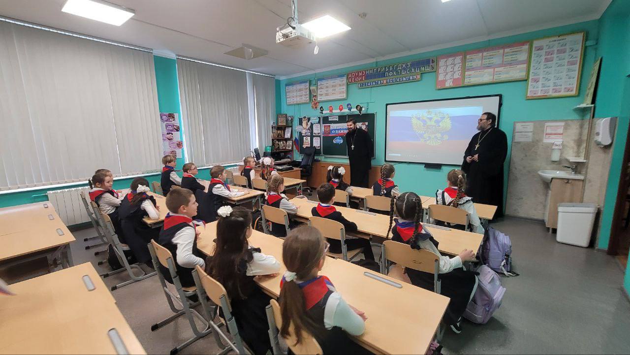 После священники посетили урок «Разговоры о Важном» с учениками первого класса, где «Орлята России» рассказали о том, какие добрые дела они совершают. Священнослужители поблагодарили маленьких помощников за их добрые дела и договорились о новых встречах в стенах школы.