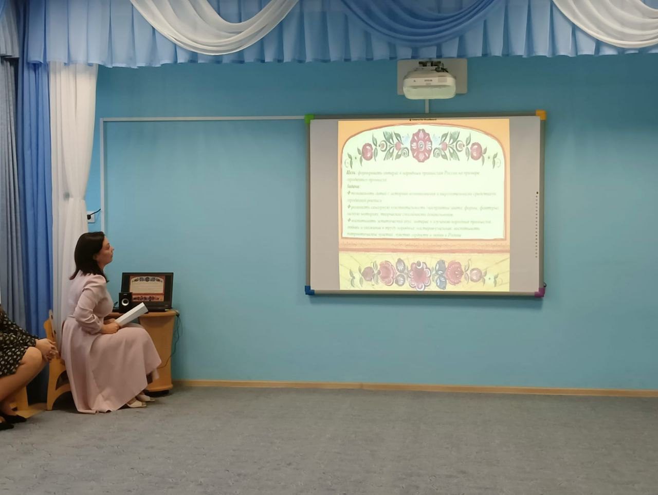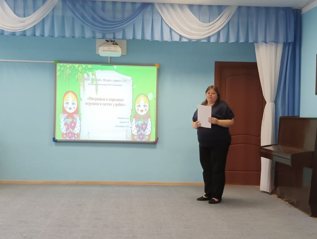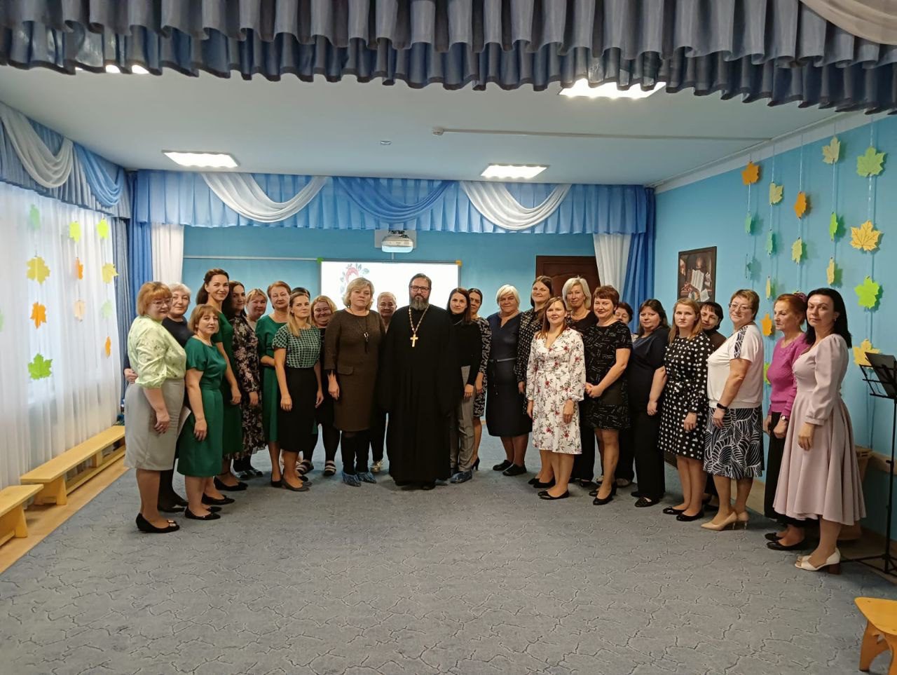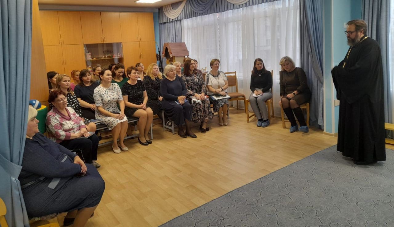 15 ноября, по приглашению администрации дошкольного учреждения, настоятель Мироносицкого храма г. Истра священник Павел Малкин принял участие в собрании педагогического совета в детском саду №24. Вниманию присутствующих, в т.ч директора Оличевой О.А. были представлены презентации проведенных с детьми занятий нравственно-патриотической направленности. Воспитатели разных групп поделились опытом работы с детьми и родителями на тему русских народных промыслов: Гжель и Хохлома, Жестовский поднос, Павлово-посадский платок и других. В заключении священнослужитель поблагодарил воспитателей за прекрасный опыт, через приобщение к народным традициям нашей страны, научения детей нравственным нормам и патриотизму. Также был рассмотрен план совместных мероприятий на будущее между приходом Мироносицкого храма и детским садом.