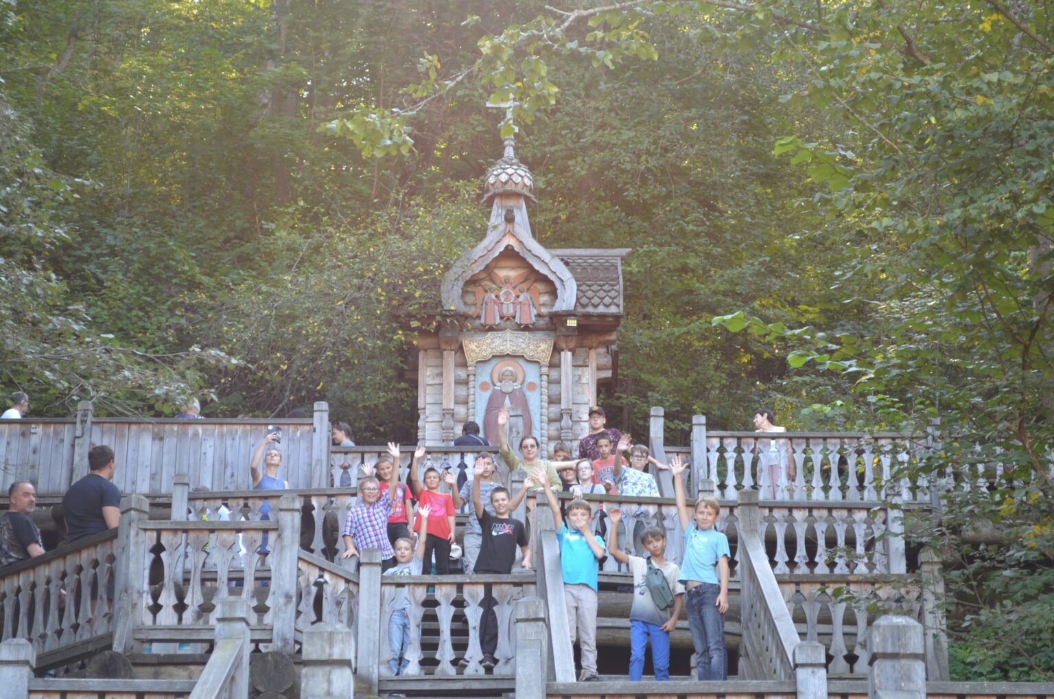 Затем ребята побывали на источнике преподобного Сергия (село Гремячий ключ), многие окунулись в источнике, все набрали воды, пропели тропарь и величание преподобному.