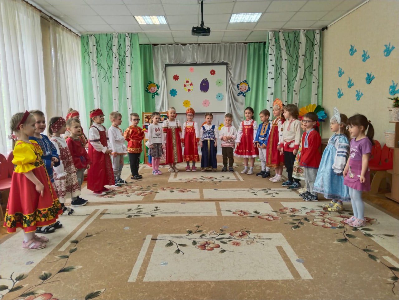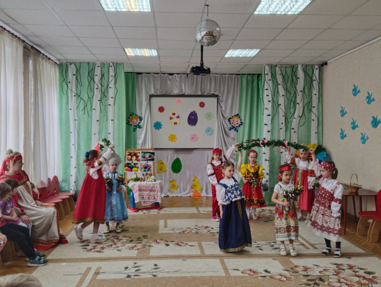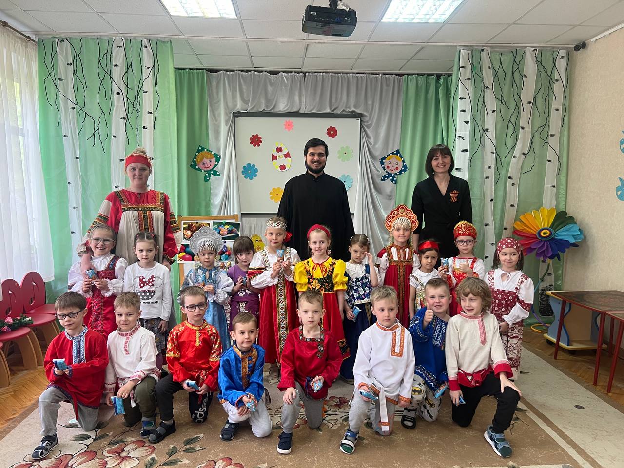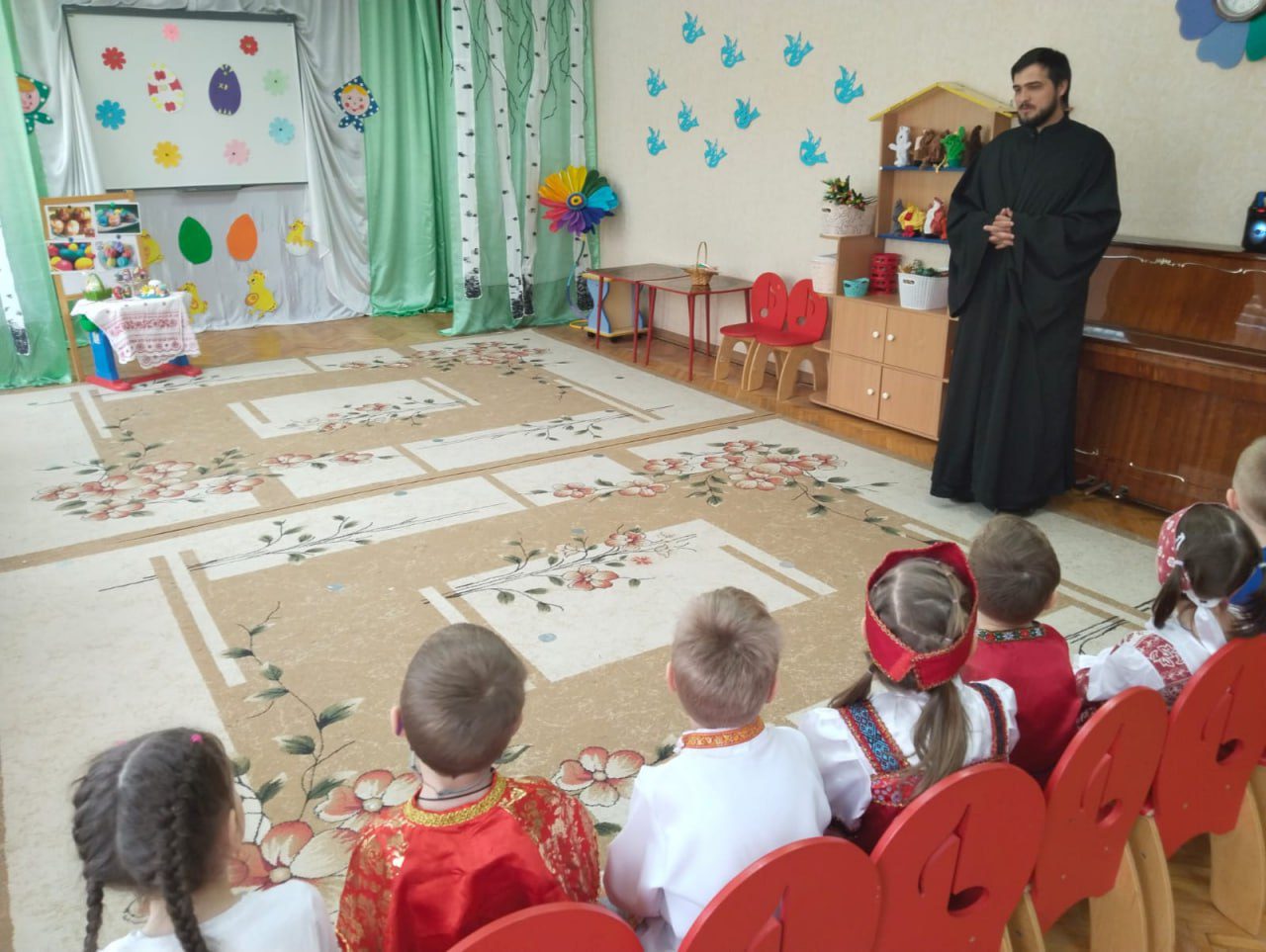 Воспитанники детских садов подготовили праздничные концерты, после которых священнослужитель рассказал о смысле праздника и о том, почему Воскресение Господа Иисуса Христа – самое главное и торжественное событие для каждого из людей.
