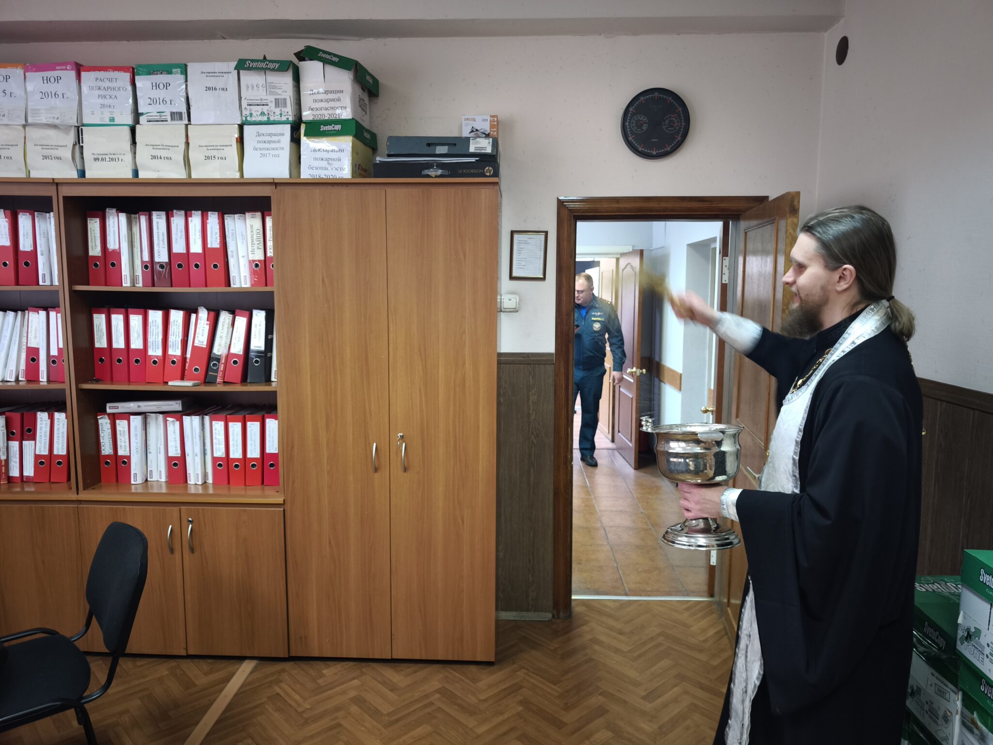 В дни попразднства Крещения Господня, 22 января, настоятель Петропавловского храма села Новопетровское священник Алексий Вареников посетил пожарно-спасательную часть в г.Истра. Батюшка поздравил спасателей с праздником и пожелал Божьей помощи в несении службы. После совместной молитвы отец Алексий окропил крещенской водой рабочие кабинеты и спец.технику.