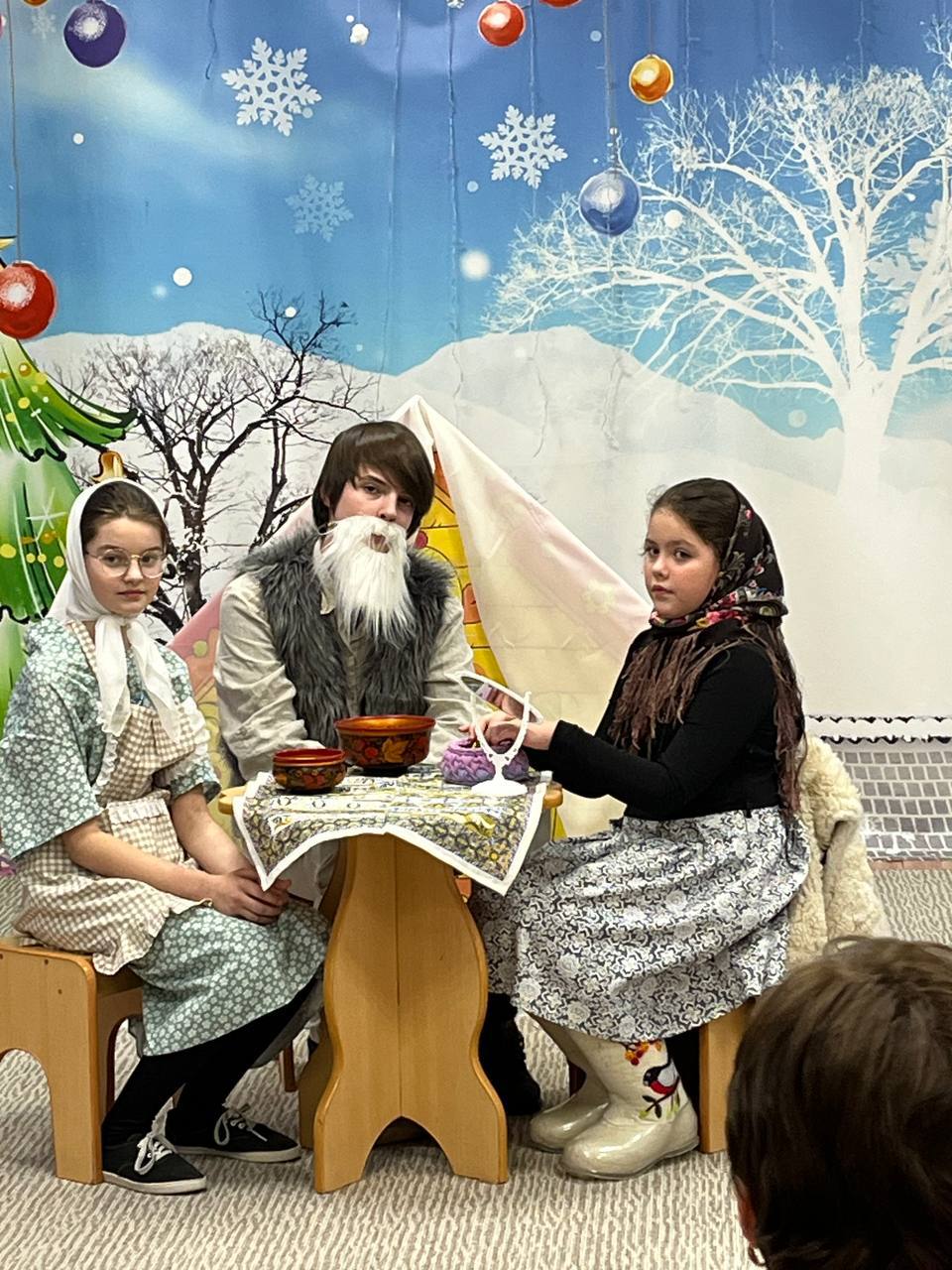 Ребята показали малышам спектакль “Рукавички”, спели песни и рассказали стихи о рождении Богомладенца Христа.