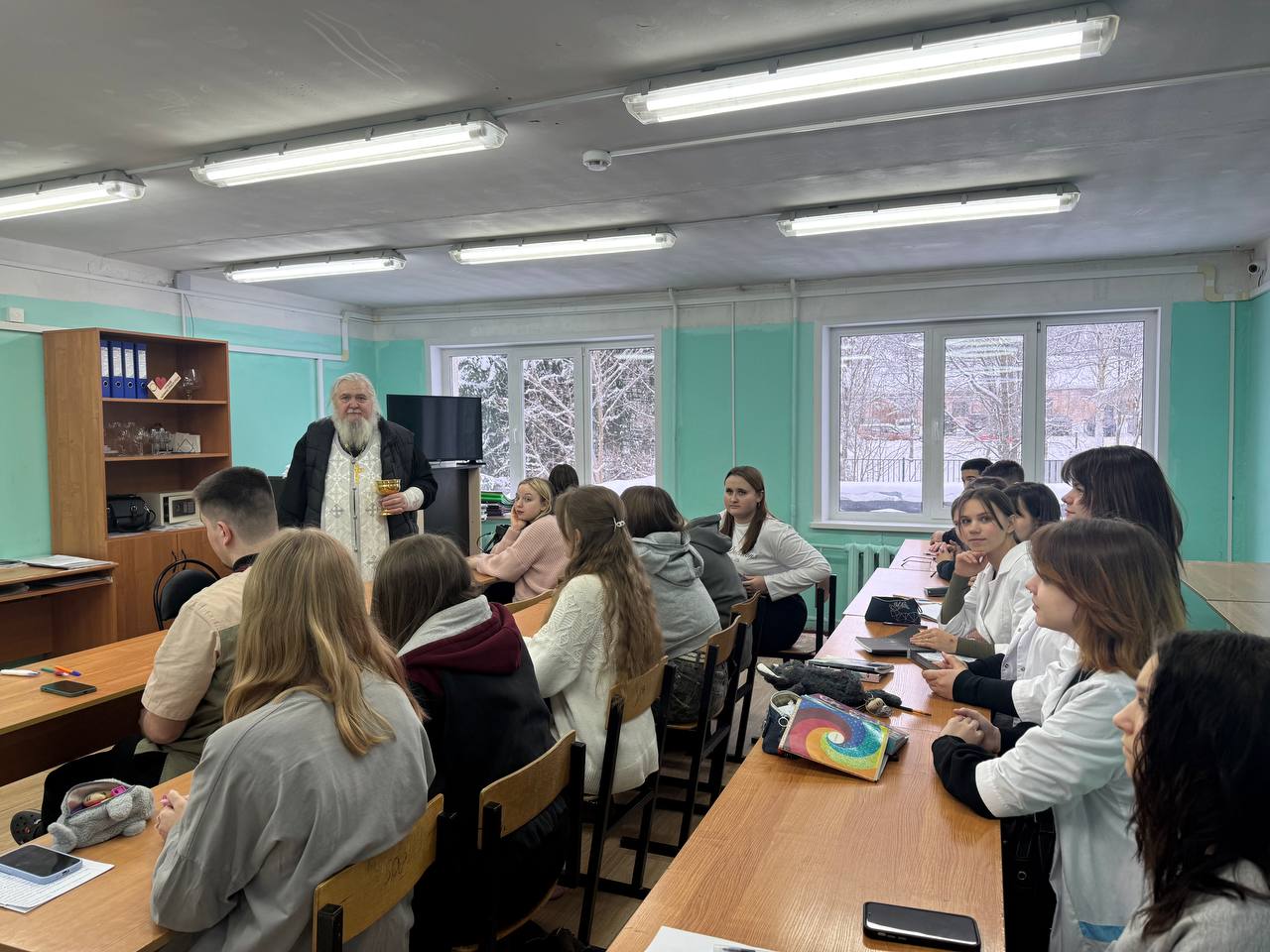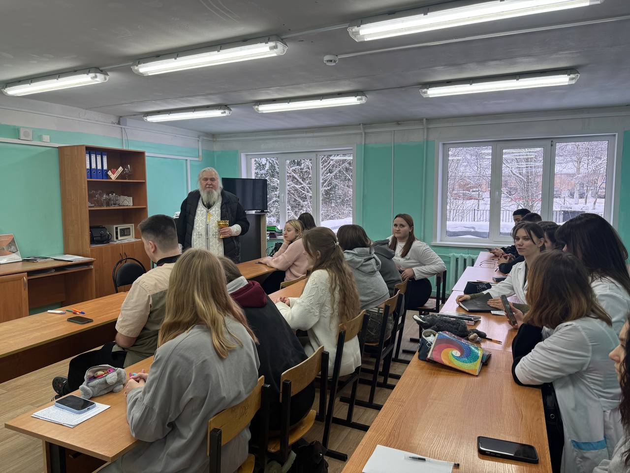 Священник побеседовал со студентами о праздниках Рождества Христова и Крещения Господня.