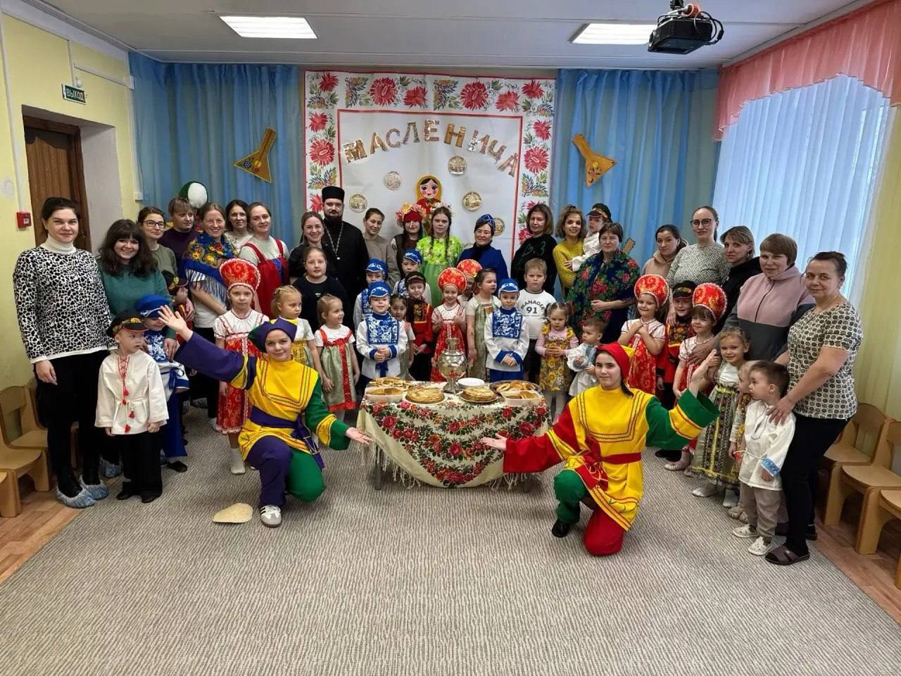Батюшка рассказал воспитанникам детского сада о связи Масленицы и Великого Поста и поздравил всех с окончанием зимы.