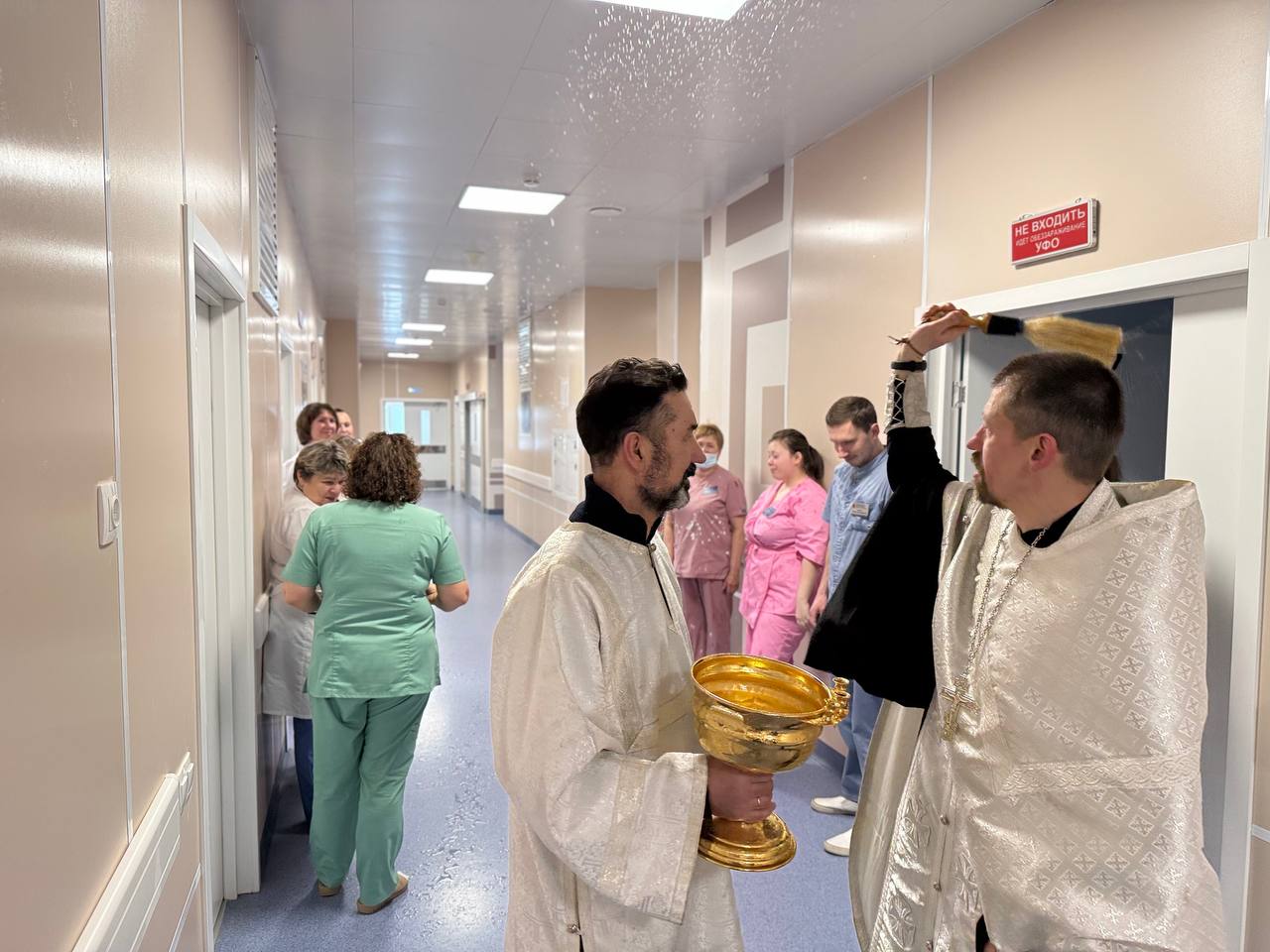19 января в день празднования Крещения Господня настоятель Вознесенского храма г. Истра священник Максим Бунеев совершили водосвятный молебен в Истринской клинической больнице на котором присутствовала главный врач Анна Васильевна Зайцева, заведующие отделениями и сотрудники медицинских учреждений. По окончанию молебна и после краткого поздравительного слова традиционно было совершено окропление Крещенской водой помещений зданий больницы и поликлиники.