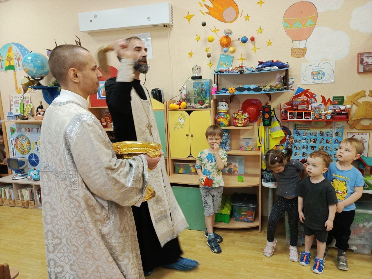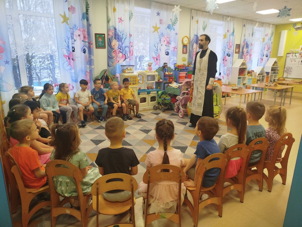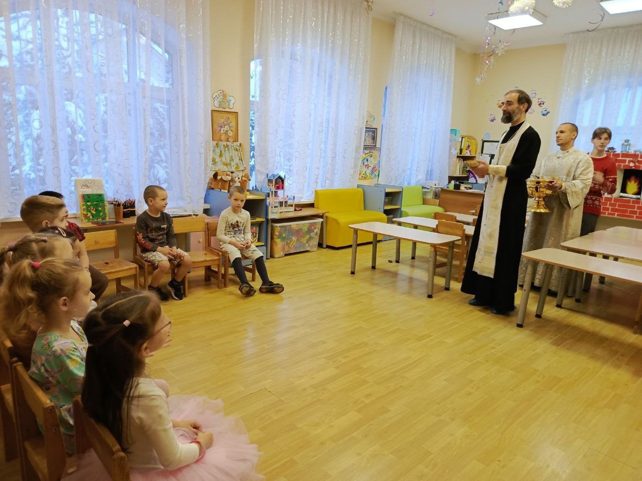 Также в этот день отец Алексий посетил дошкольные отделения МОУ ” СОШ имени Л. М. Доватора”, корпус 2-5 и детский сад 7. В теплой атмосфере прошла беседа с ребятами о смысле и традициях праздника, о чистоте души и добрых поступках. После общения священник окропил воспитанников, сотрудников и помещения дошкольных учреждений крещенской водой.