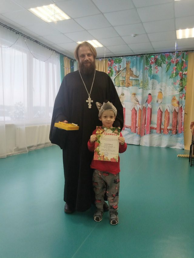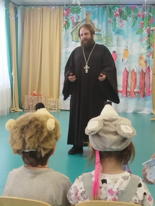 На празднике присутствовал настоятель храма Рождества Пресвятой Богородицы с.Шитьково иерей Димитрий Пищерков. Батюшка поздравил малышей с праздниками, а также подарил подарки и грамоты за участие в конкурсе “Рождественский ангел” и фестивале Рождественских елок.