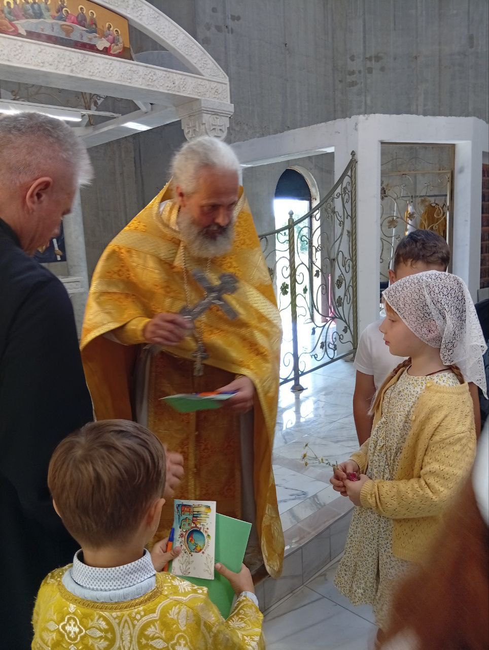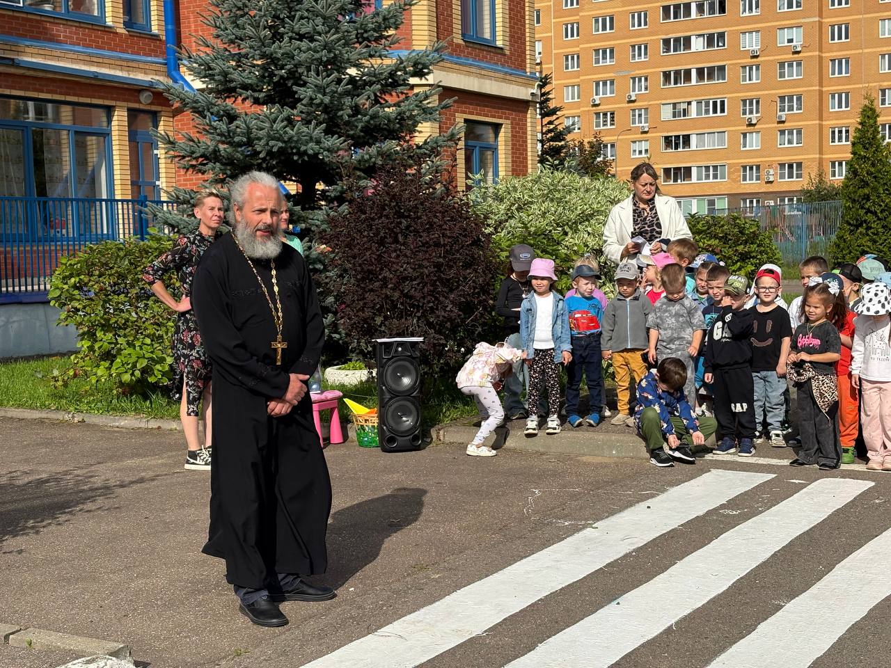 1 сентября 2025 г. настоятель Всехсвятского храма священник Сергий Ухов посетил детский сад №28 в ЖК «Новоснегиревский».