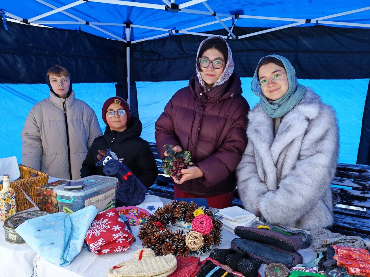 В воскресенье 28 декабря в рамках Акции «Христос Рождается, Славите!» молодежь Серафимовского храма п. Селятино Наро-Фоминского округа приняла участие в подготовке и проведении на территории храма предрождественской благотворительной ярмарки. На ярмарку прихожане принесли свою выпечку, рукоделия, сделанные своими руками рождественские сувениры. Собранные на ярмарке средства пойдут на приобретение рождественских подарков одиноким старикам и инвалидам п.Селятино и в дом престарелых, на дела милосердия в Святые дни Рождества Христова.