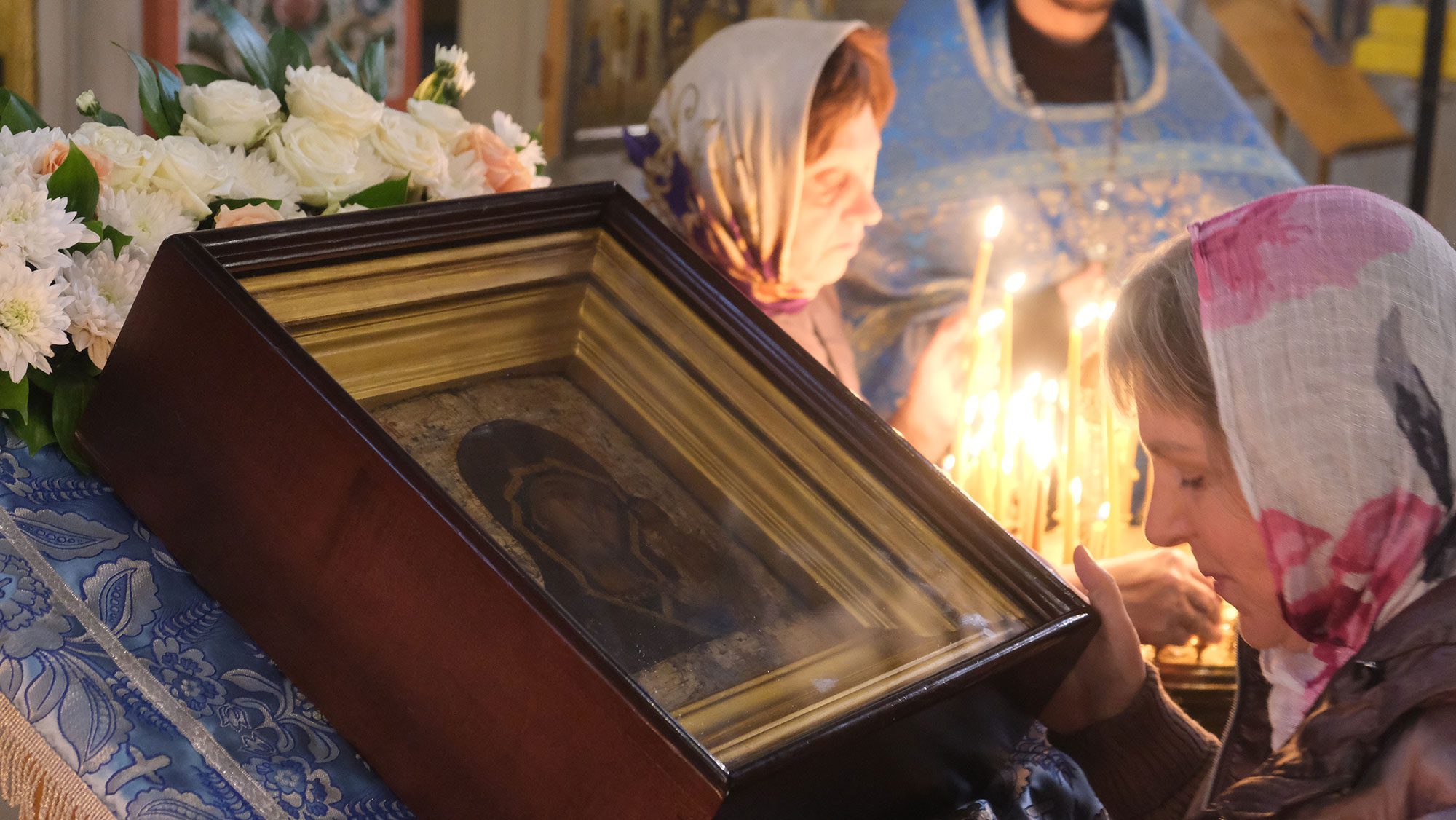 перед московским списком Казанской иконы.