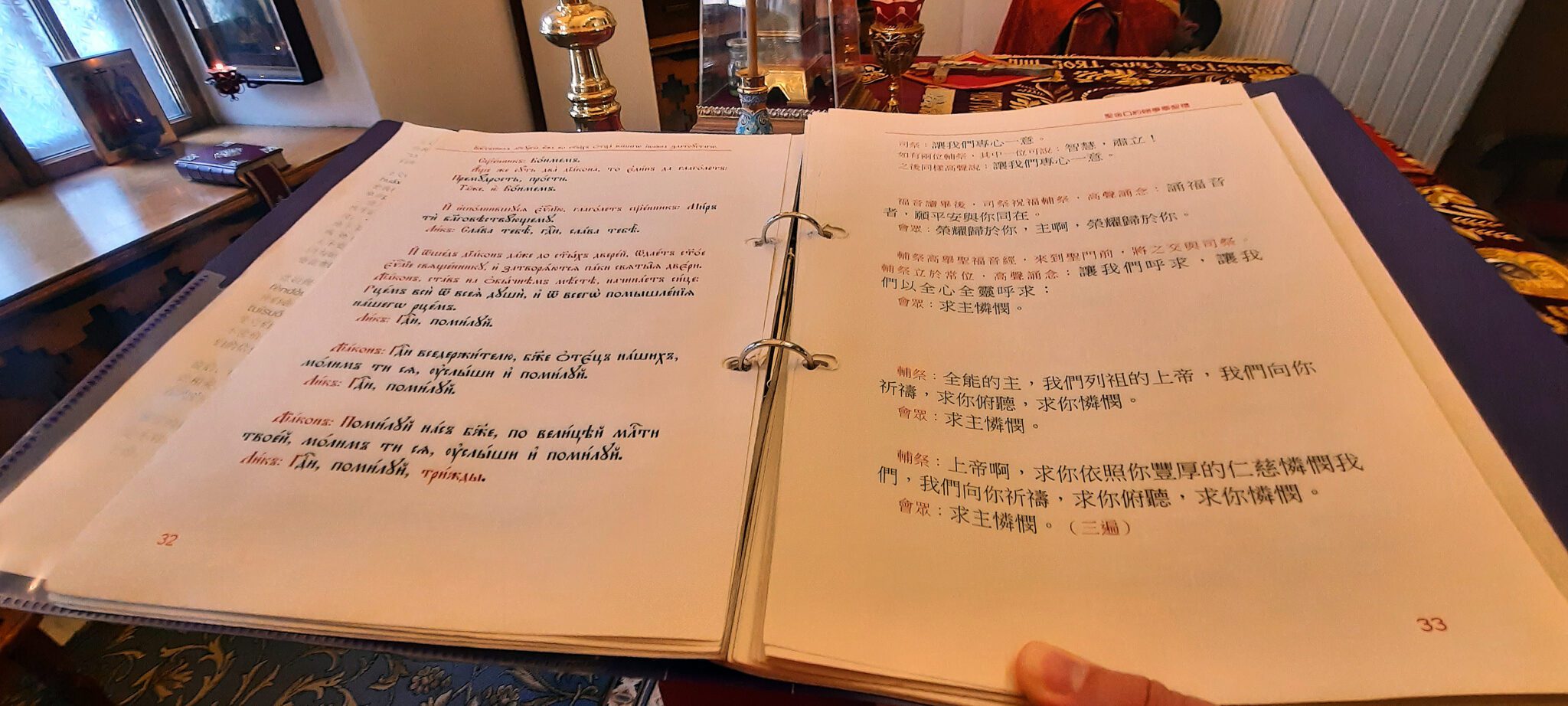 Каждое воскресение в 8 утра начинается Божественная Литургия на китайском языке. В это воскресение службу возглавил клирик и секретарь Китайского Подворья Патриарха Московского священник Алексий Юсупов и ему сослужили священник Артемий Головчанский и диакон Анатолий Гольдман.