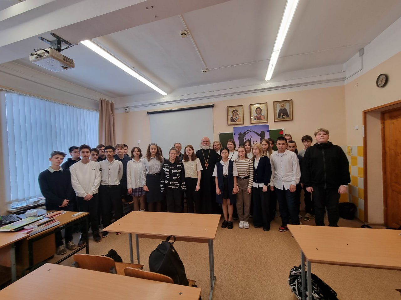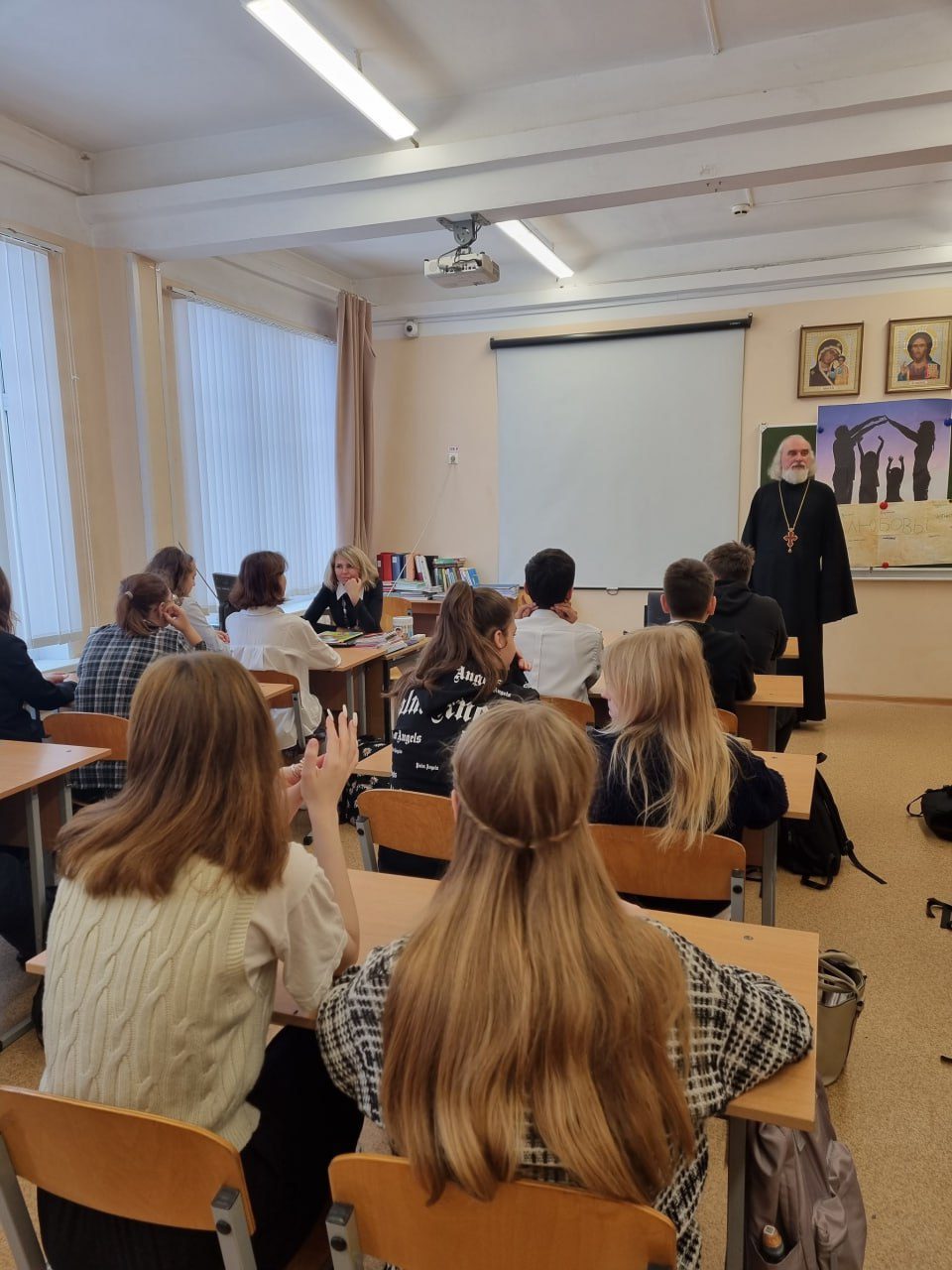 1 декабря настоятель Никольского храма д. Мансурово протоиерей Вадим Сорокин рамках проекта «Задай вопрос священнику» встретился с учениками 9а и 9б классов Костровской школы. Разговор со старшеклассниками коснулся тем семьи, понимания личной нравственной ответственности. Священнослужитель не только отвечал на вопросы, но и задавал вопросы сам, чтобы прояснить жизненную позицию учащихся.