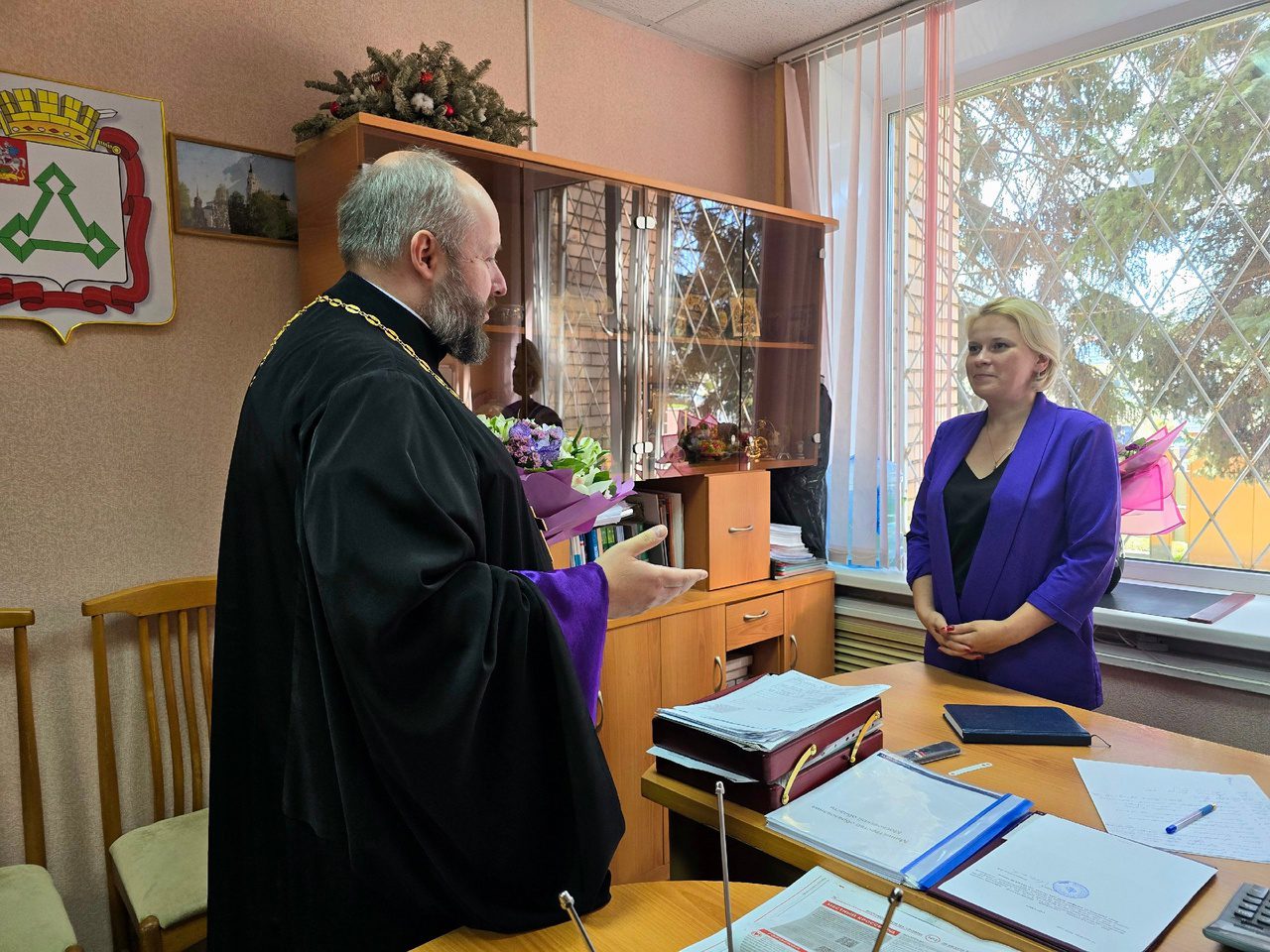 13 сентября заместитель благочинного Волоколамского округа священник Михаил Завитаев поприветствовал и поздравил со вступлением в должность нового начальника Управления системой образования Администрации Волоколамского городского округа Елену Александровну Медведкову.