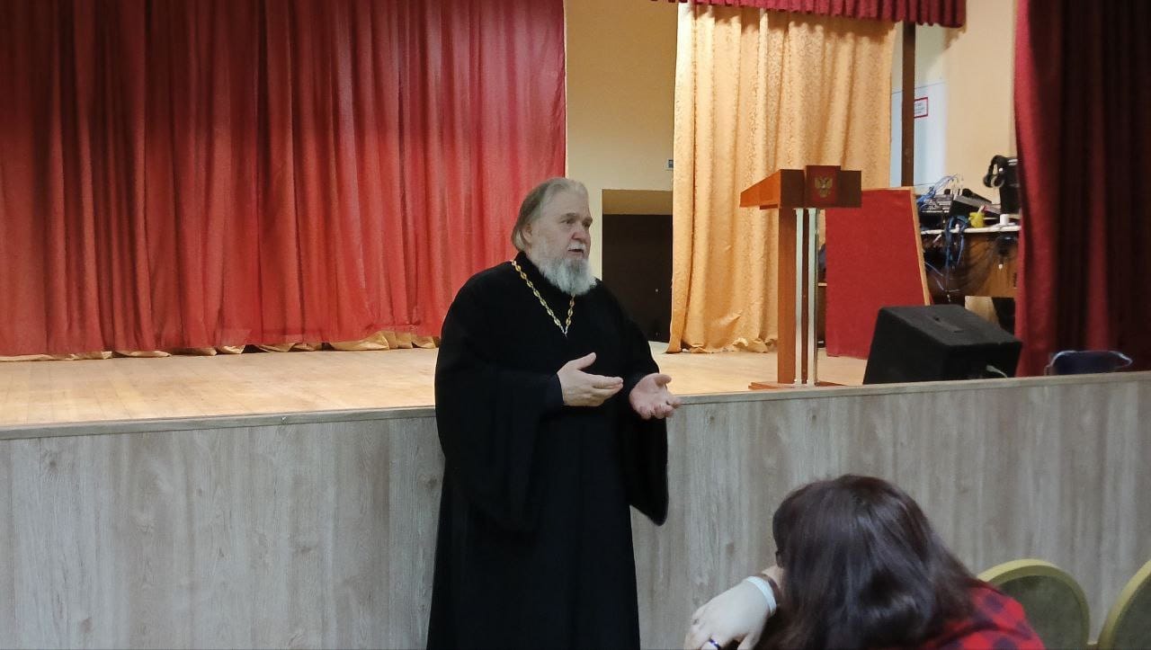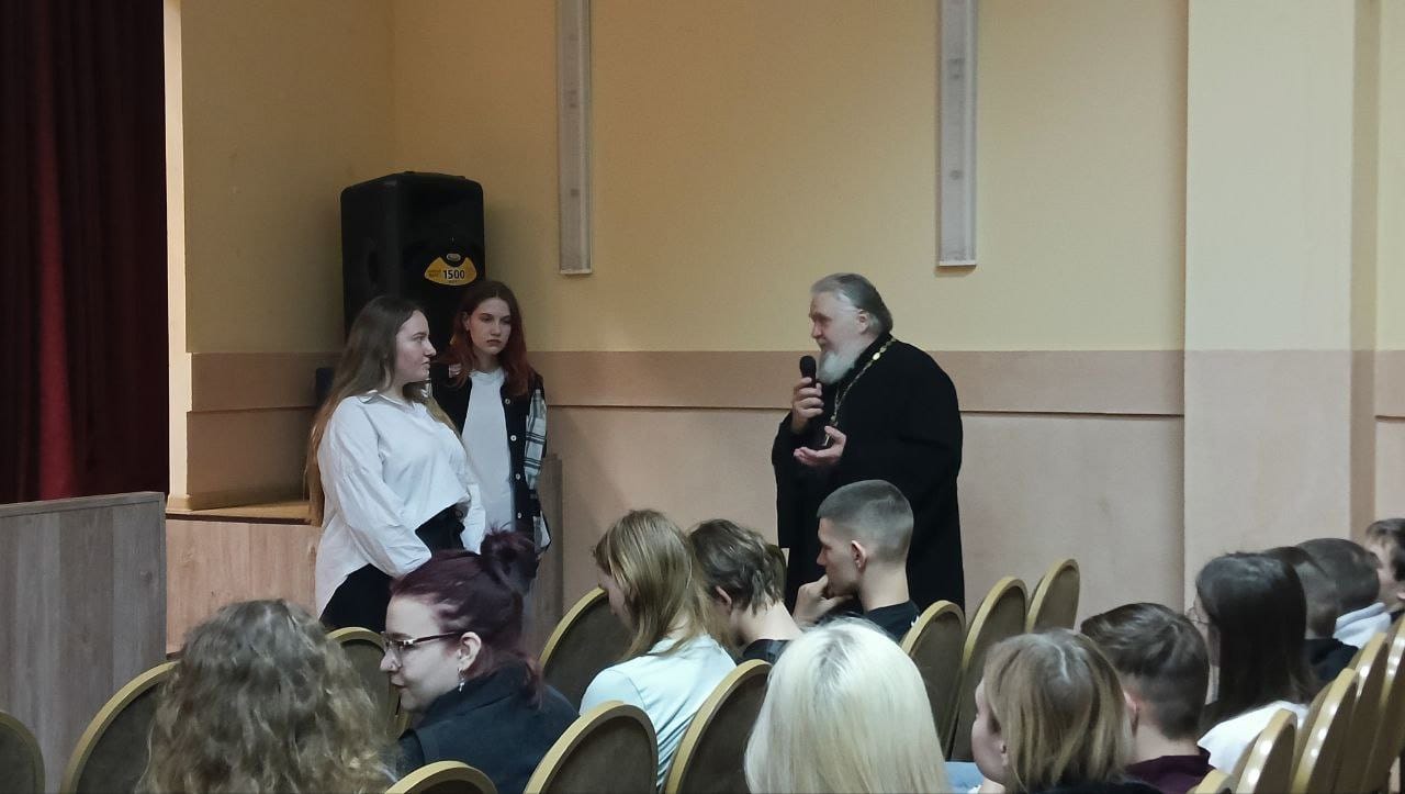 11 апреля в Волоколамском аграрном техникуме «Холмогорка» прошла очередная встреча студентов с клириком храма Рождества Святой Богородицы села Суворово священником Андреем Сергейчуком, который провел беседу на тему «История возникновения книги».