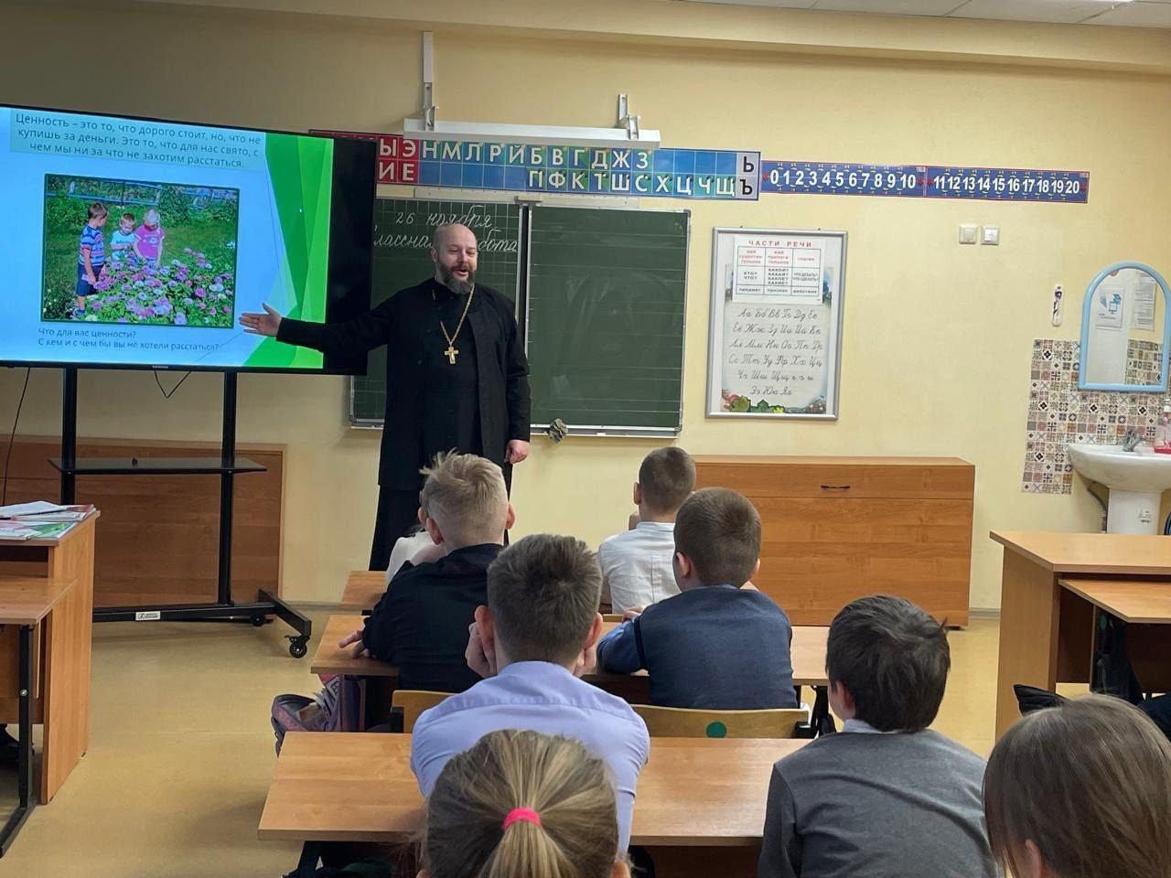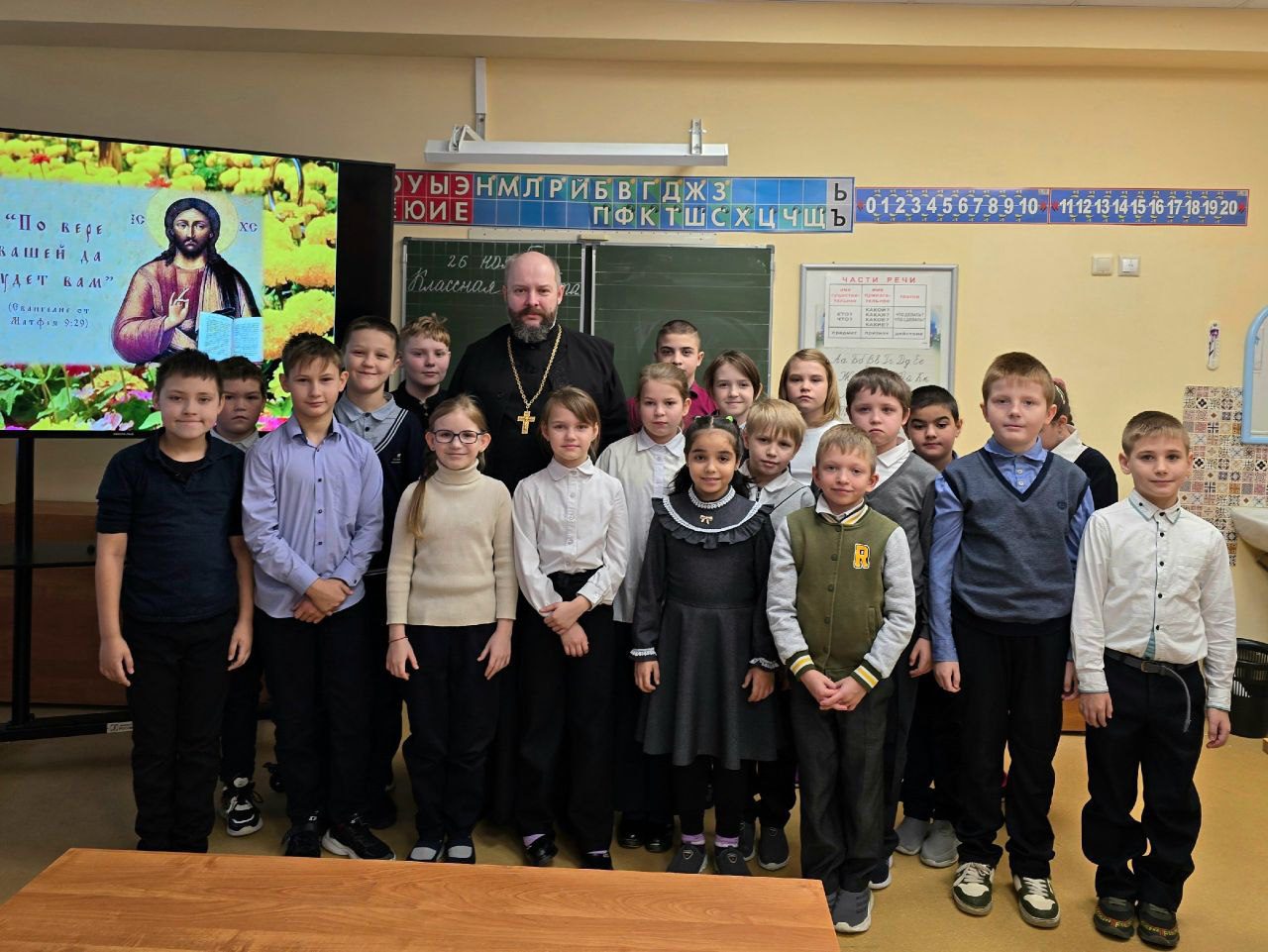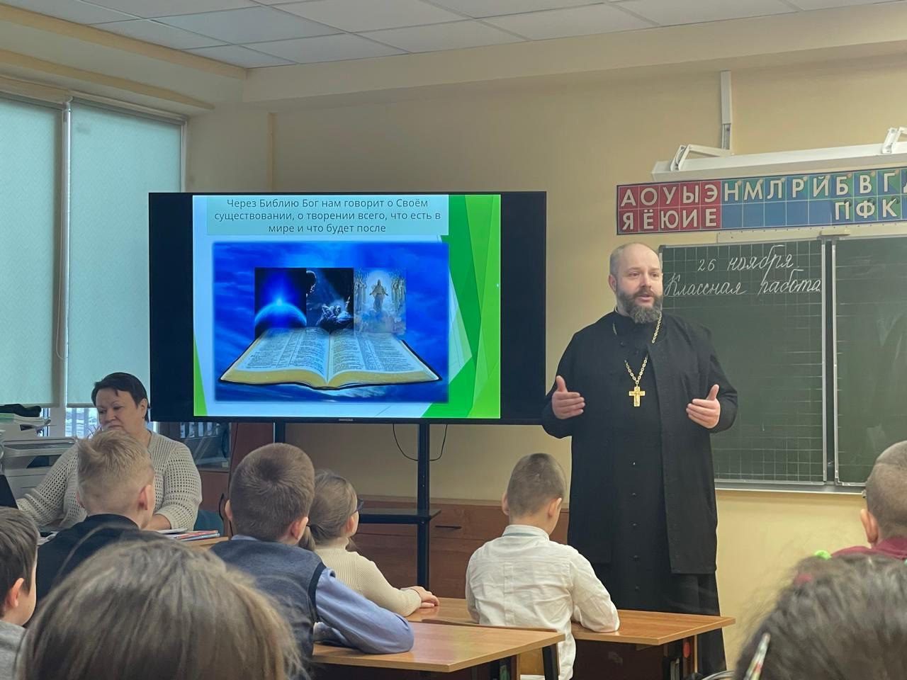 26 ноября, в рамках Рождественских чтений, по приглашению православного педагога-психолога Любови Георгиевны Овды заместитель благочинного Волоколамского округа священник Михаил Завитаев провел встречу с учащимися 3-х классов Волоколамской школы-интернат.