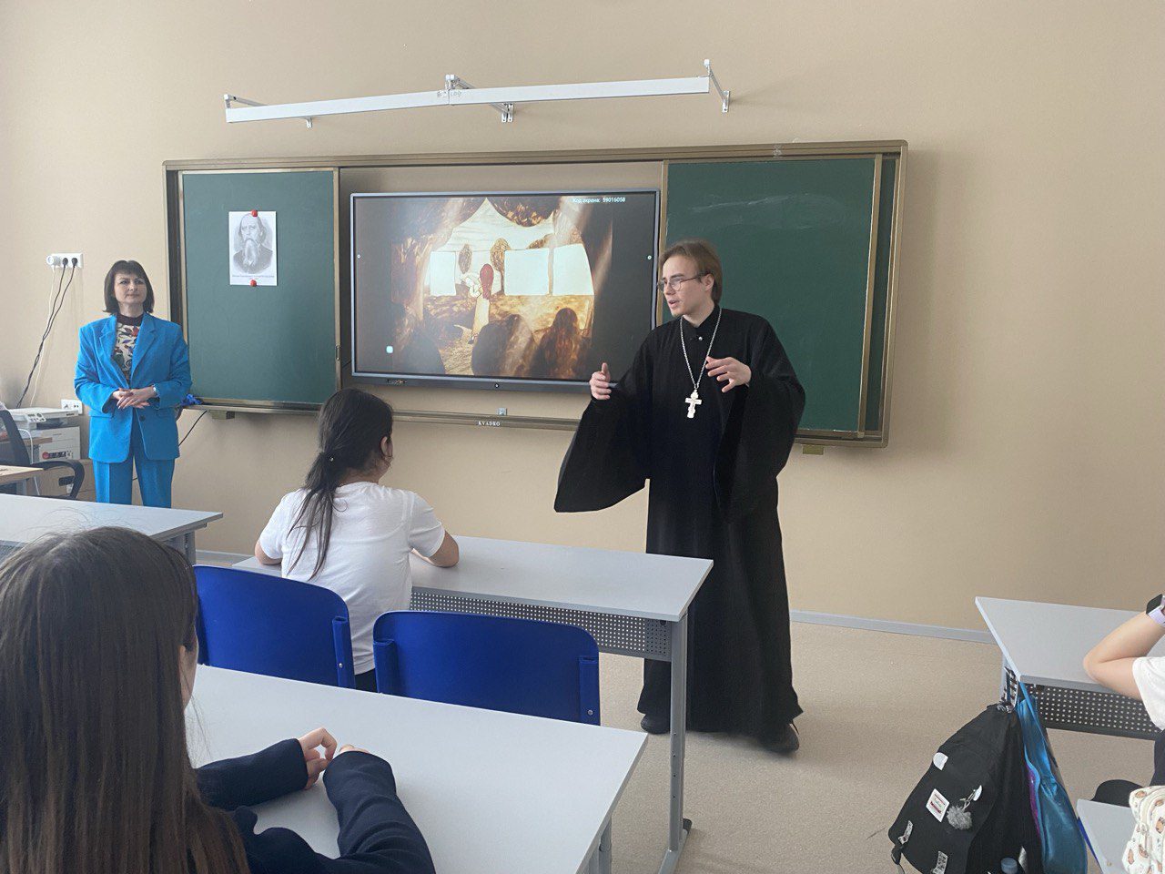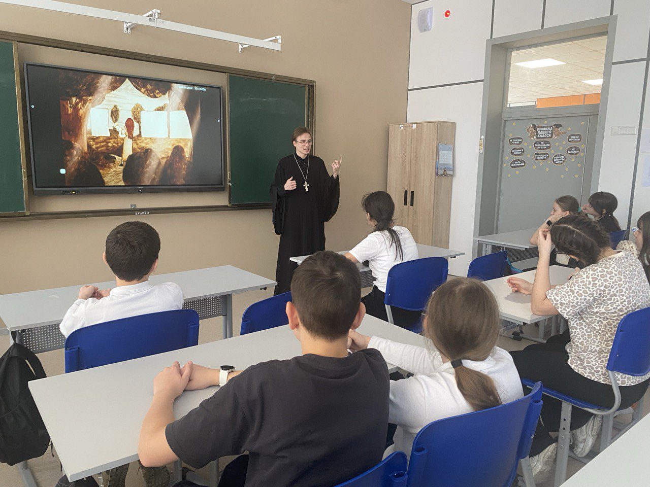 Разговор со священником о Рождестве Христовом в Общеобразовательной школе «Квантум» (филиал мкрн. Восточный)